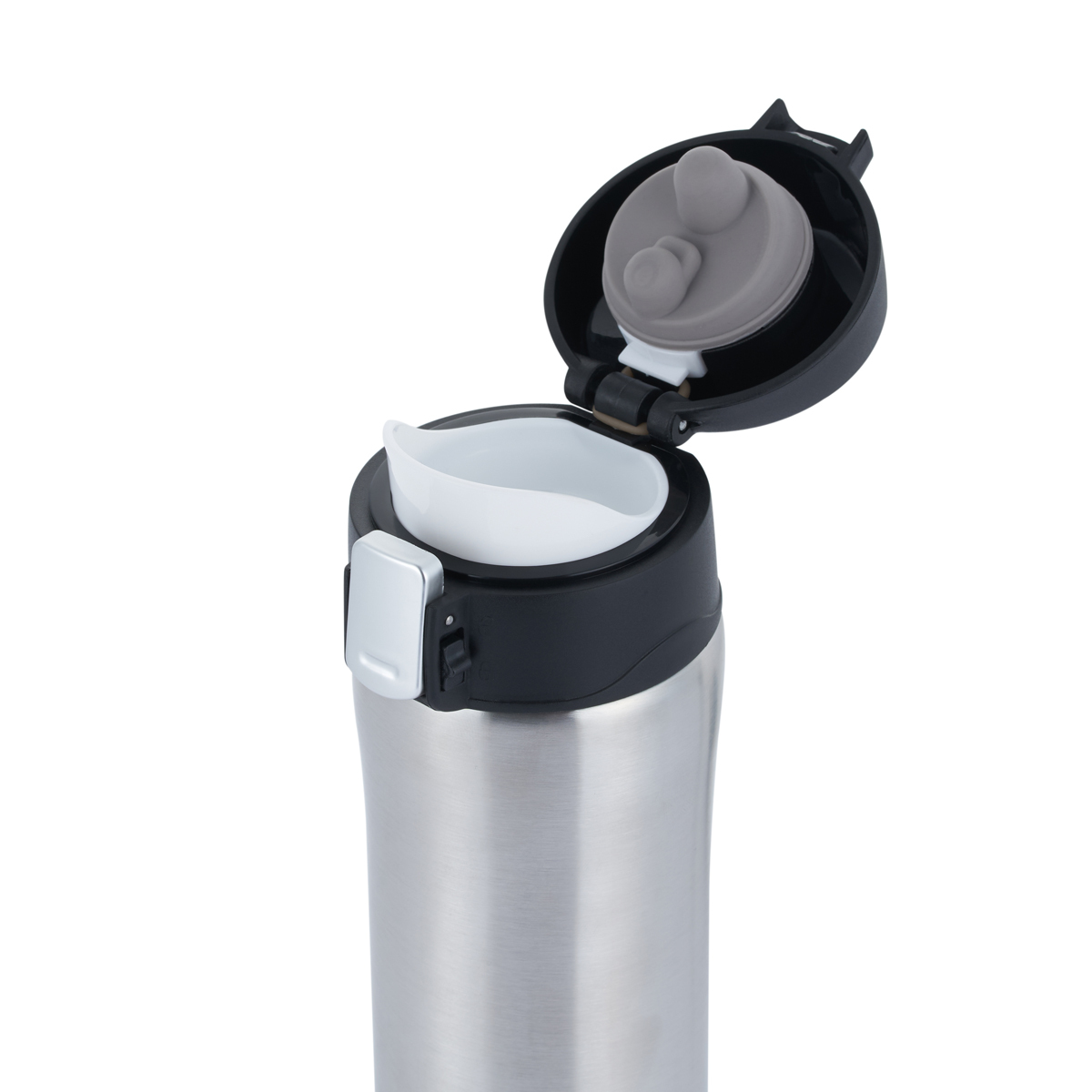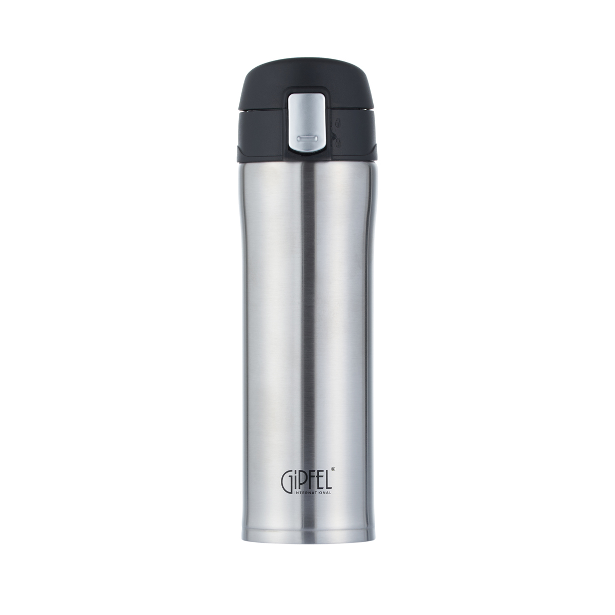 Термокружка вакуумная Gipfel BONN 50671 объемом 430 мл. У термоса герметичная крышка, фиксирующаяся замком, что предотвратит проливание. Корпус и колба сделаны из нержавеющей стали SUS 304, крышка из пластика и силикона. Кружку удобно использовать каждый день, брать с собой на прогулку, работу или в поездку на машине, она не займет много места в рюкзаке или сумке.