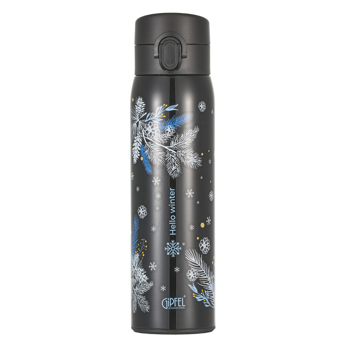 Термокружка вакуумная Gipfel Christmas Time 52062 370 мл. Материал: нержавеющая сталь 18/10. Цвет: черный.