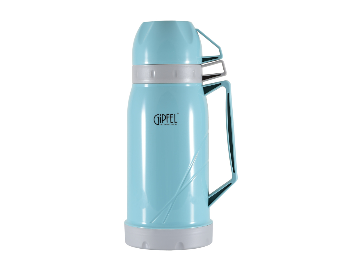 Термос Gipfel NOVELLA 8376. Объем термоса 1000 мл. Внутри стеклянная колба. На крышку прикручиваются две чайные чашки с ручками. Высота термоса 30 см, диаметр дна 11,5 см. Емкость легко носить с собой на пикник, в путешествие и даже на работу.