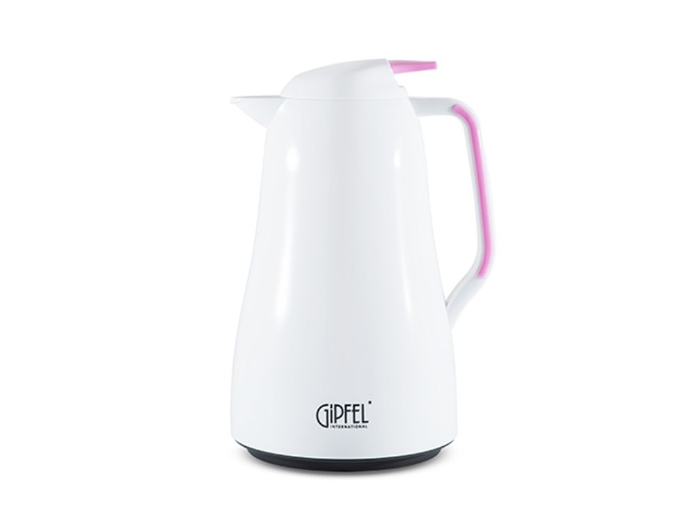 Термос-кофейник GIPFEL ELIZA 8218. Объем 1000мл. Оборудован стеклянной колбой, которая позволит надолго сохранить напиток горячим. Кофейник выполнен из пластика. Цвет белый с розовыми вставками.