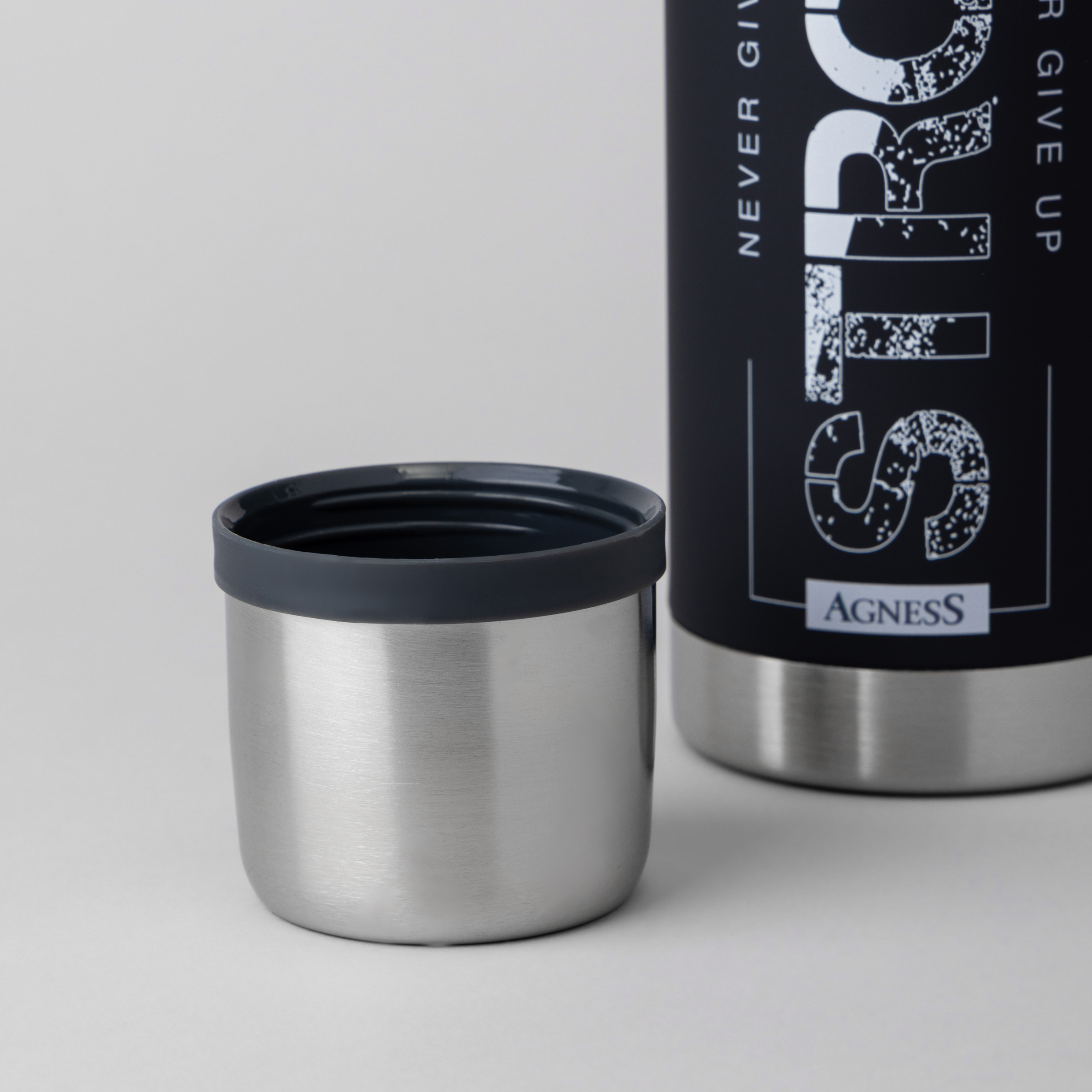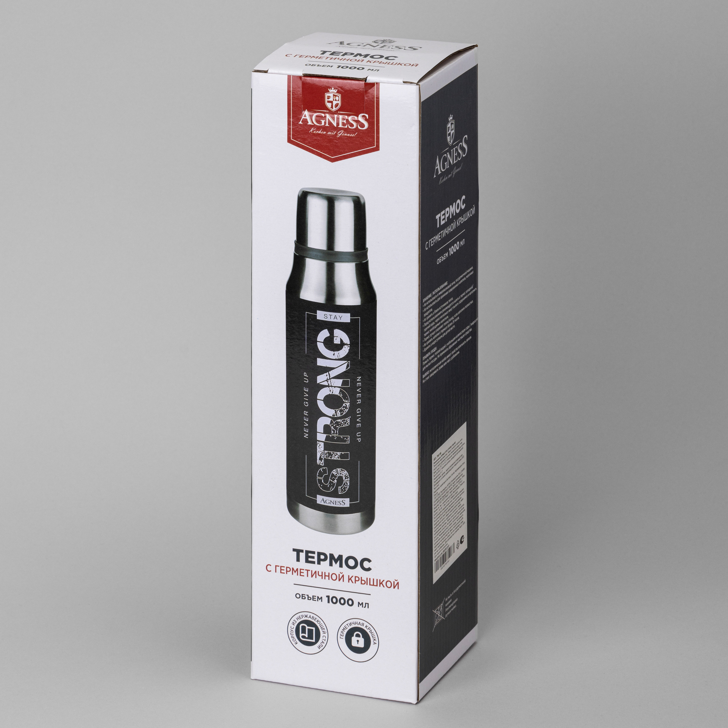Термос AGNESS - незаменимый помощник в повседневной жизни. Будь это дальняя поездка, обычная прогулка или просто рабочий день в офисе - любимый напиток всегда с собой. Двойные стенки из нержавеющей стали, благодаря технологии вакуумной термоизоляции, сохраняют напитки холодными или горячими в течение долгого времени. Дополнительная медная прослойкой между 2-мя стенками, увеличивает термоизоляцию на 10%. Герметичная крышка. Термос AGNESS удобно брать с собой, он легко поместиться в сумку или рюкзак. Не мыть в посудомоечной машине. Рекомендована ручная мойка. Термос считается годным, если после 6 часов хранения остаточная температура воды в нем будет около 60 С° (+/- 5 С°). Начальная температура воды должна быть 98-100 С°. Испытания должны проводится при комнатной температуре 21 С°