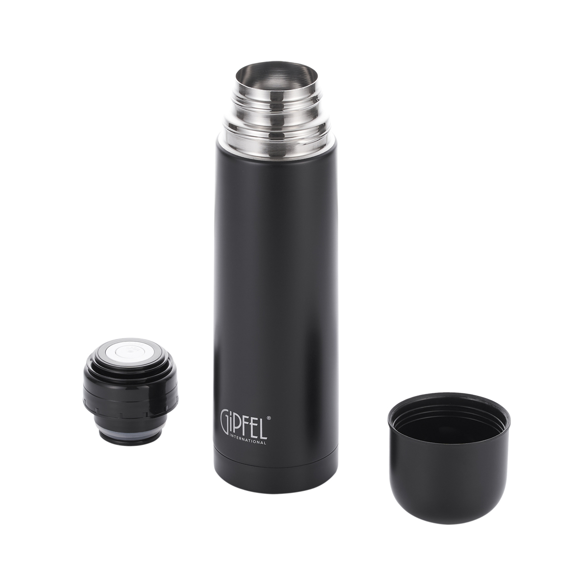 Термос вакуумный GIPFEL AMBASSADOR 50436 750мл с кнопочным клапаном. Цвет: черный матовый. Материал: нержавеющая сталь 18/8. Под крышкой завинчивающаяся герметичная пробка. Крышку можно использовать, как чашку. Термос удобно использовать каждый день, брать с собой в поездку, он не займет много места в рюкзаке или сумке.
