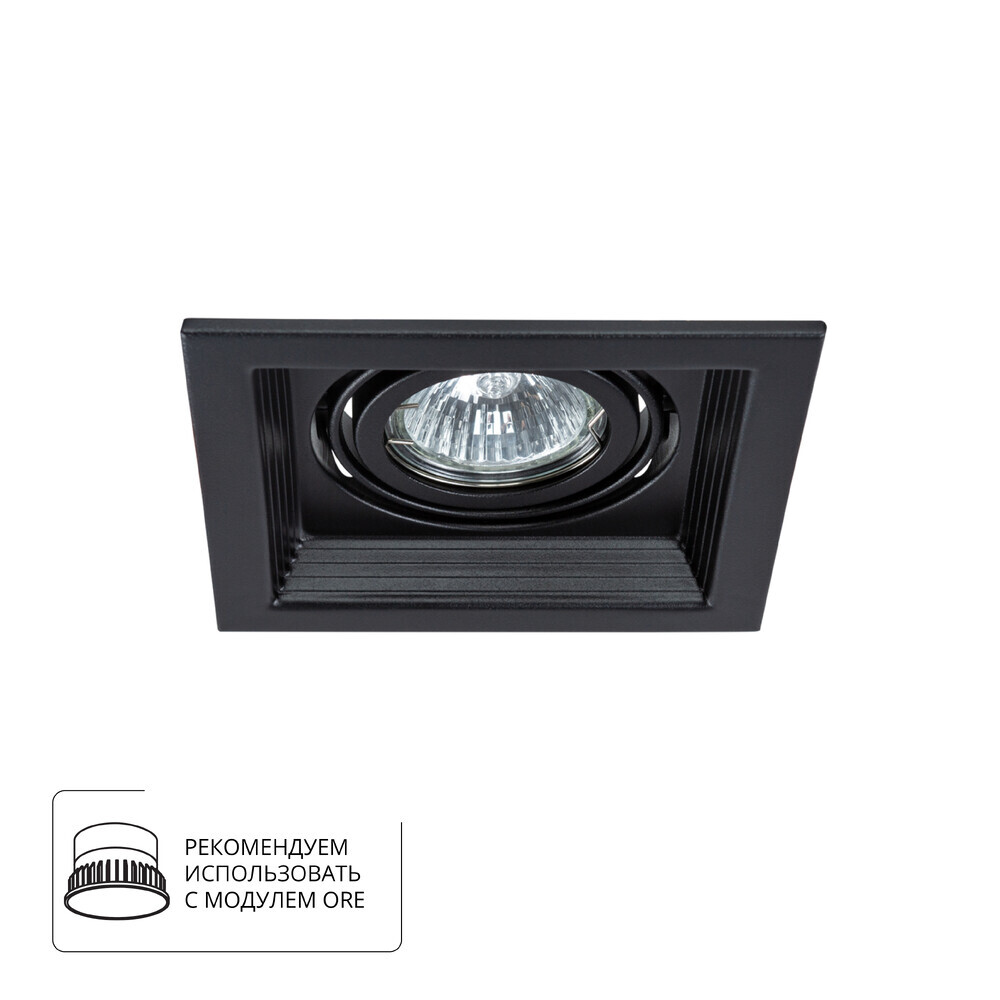 Точечный встраиваемый светильник Arte Lamp A6661PL-1BK выполнен в современном стиле хай-тек. Корпус из черного алюминия обеспечивает надежность и аккуратный внешний вид. Светильник предназначен для монтажа в подвесные потолки и создает направленный вниз поток света, идеально подходящий для зонирования пространства и подсветки конкретных областей. Модель использует галогеновые лампы, обеспечивая комфортное и качественное освещение. Это практичное решение для современной кухни, коридора или ванной комнаты.