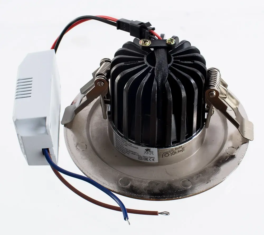 Точечный встраиваемый светильник Arte Lamp A5438PL-1SS создает акцентное освещение, направленное строго вниз. Модель в современном стиле выполнена из металла серебристого цвета и предназначена для монтажа в подвесные потолки. Светильник работает со светодиодными лампами, обеспечивая энергоэффективность и длительный срок службы. Лаконичный дизайн без плафона делает его универсальным решением для различных помещений, от кухни до коридора.