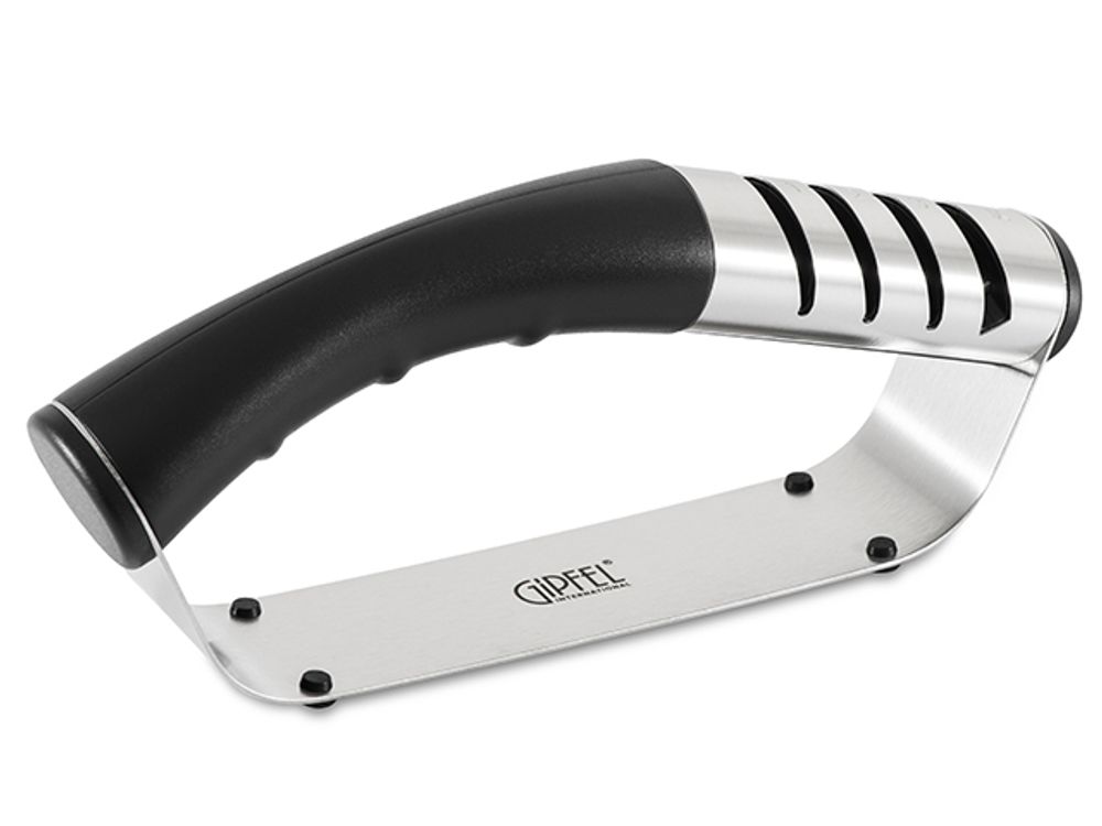 Точило для ножей GIPFEL 2923. Размер точила 21х8х4см. Материал: алмаз, керамика, карбид вольфрама, нержавеющая сталь, пластик, силикон. Точило имеет 3 ниши для заточки ножей и одну нишу для заточки ножниц. Плотно обхватите ручку точила и зафиксируйте его на поверхности. Затем поочередно воспользуйтесь тремя слотами для заточки ножа, помещая его строго перпендикулярно. Первый слот используется для предварительной заточки, второй для восстановления формы клинового среза, третий для полировки лезвия.
