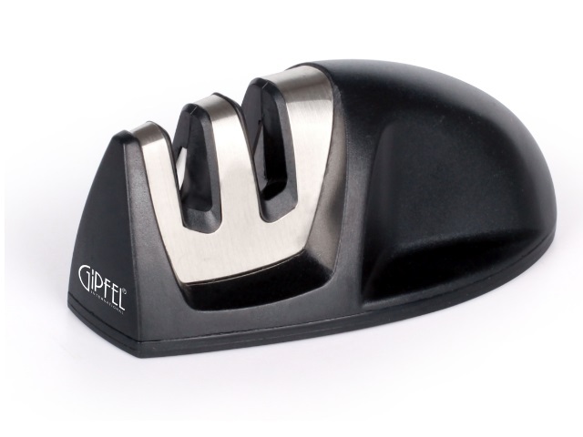 Точило для ножей Gipfel ROOT 2908. Размер 10х5х4 см. Точило удобно можно зафиксировать одной рукой на поверхности благодаря эргономичному пластиковому корпусу, достаточно всего 5-7 движений, чтобы полностью заточить нож. На нем 2 слота для заточки ножей. Материал шлифовальных кругов: керамика, карбид вольфрама.
