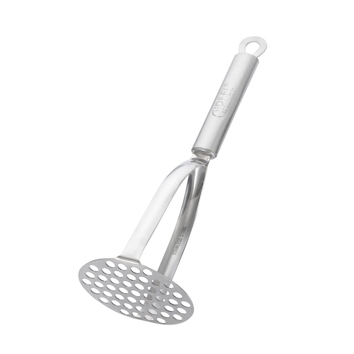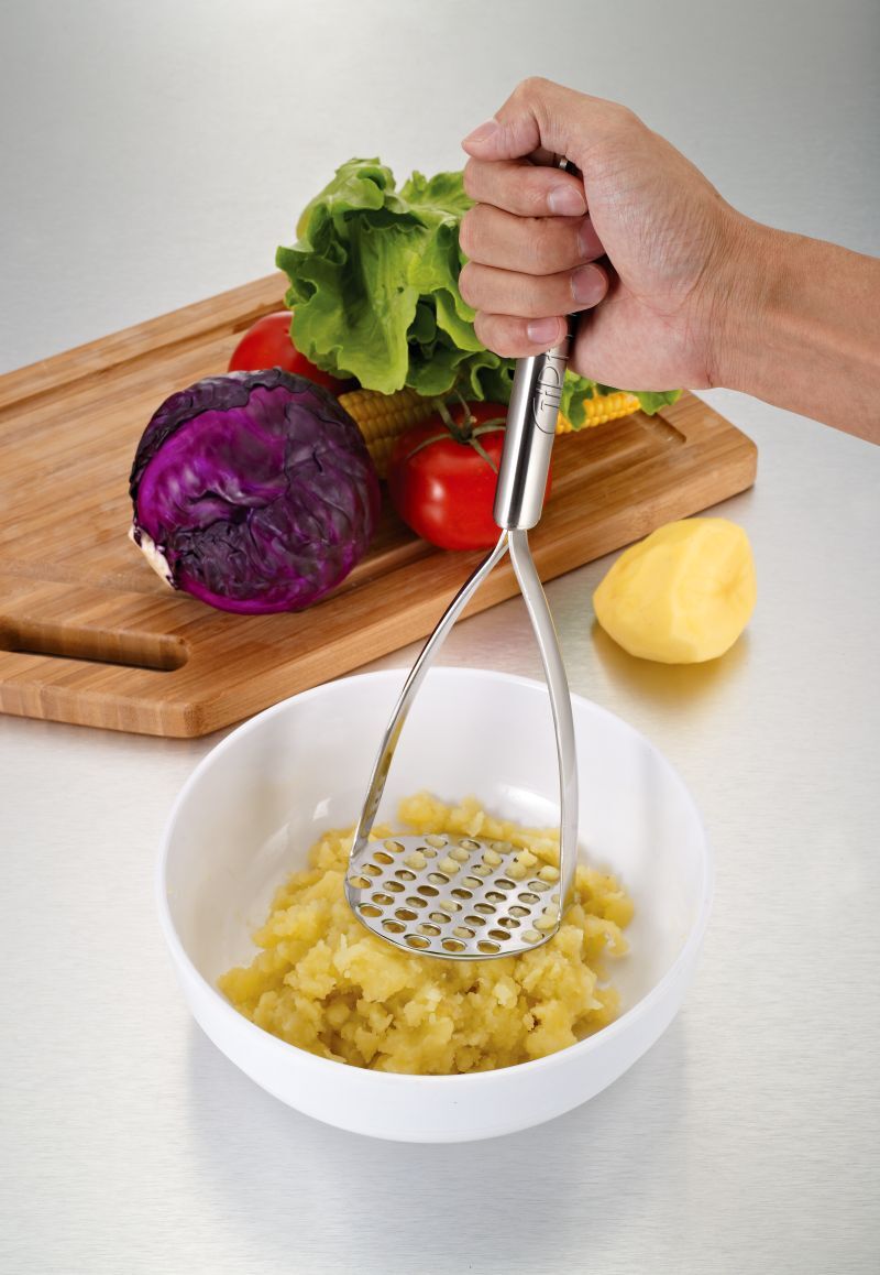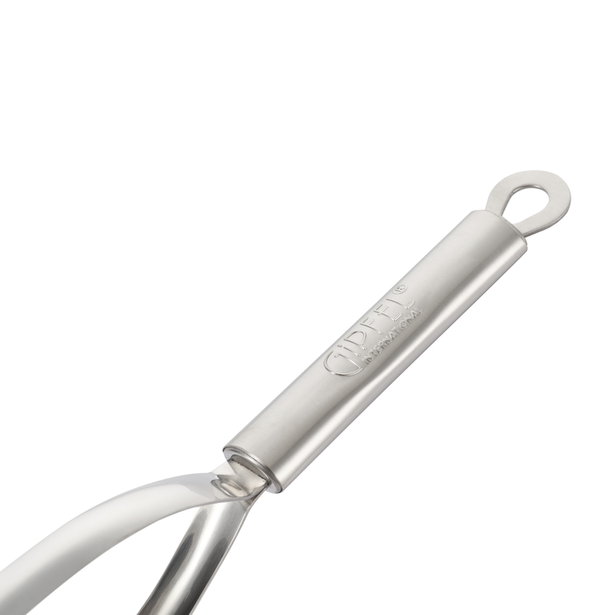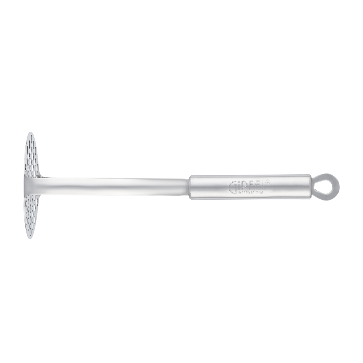 Толкушка GIPFEL AMULET 6508 длиной 29см. Выполнена из нержавеющей стали и имеет петлю для подвешивания, на ручку нанесен фирменный логотип Gipfel. Толкушку можно использовать в посуде из нержавеющей стали, ей удобно взбивать картофель в пышное пюре. Инструмент очень прочный, не деформируется и устойчив к коррозии. Толкушку можно очищать вручную или мыть в посудомоечной машине.