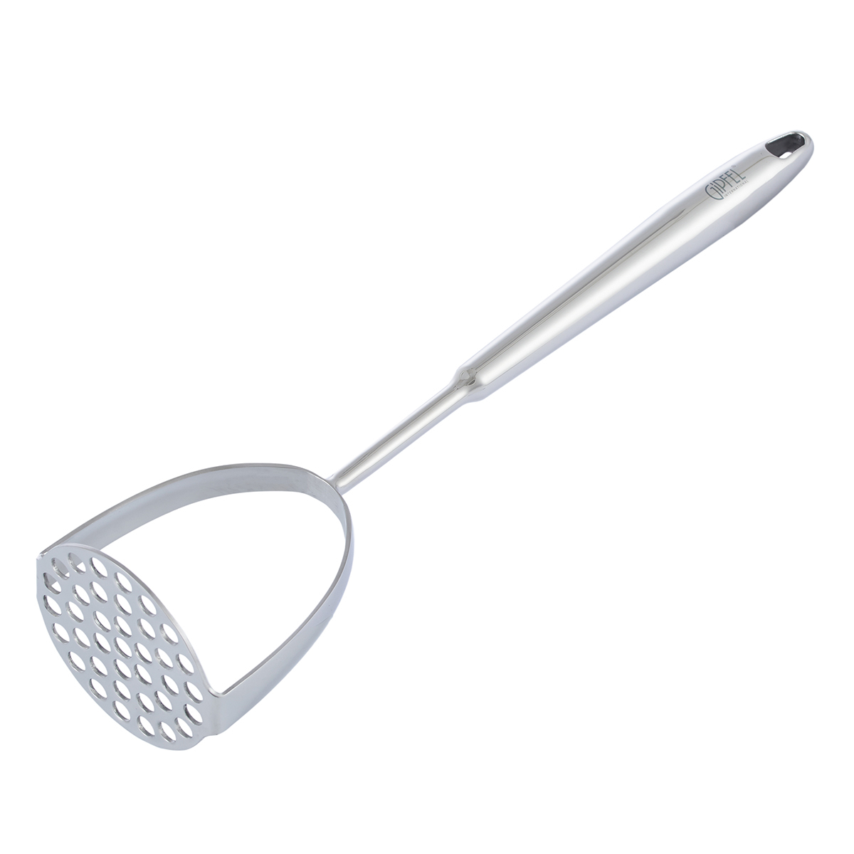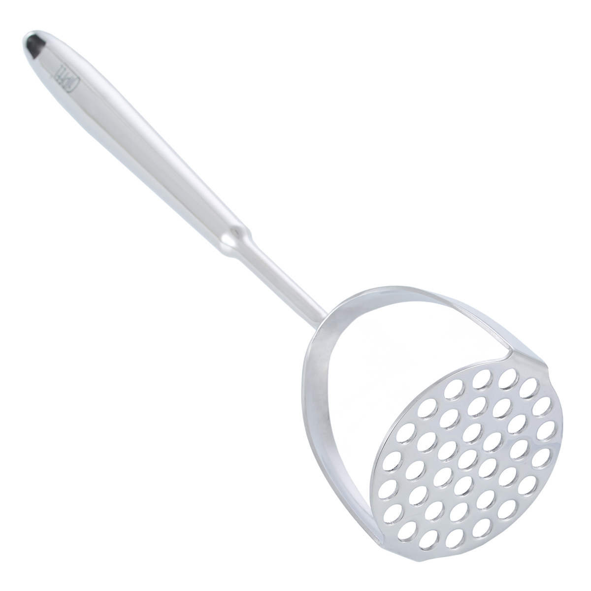 Толкушка с зеркальной полировкой, смотрится на кухне стильно и нарядно.
