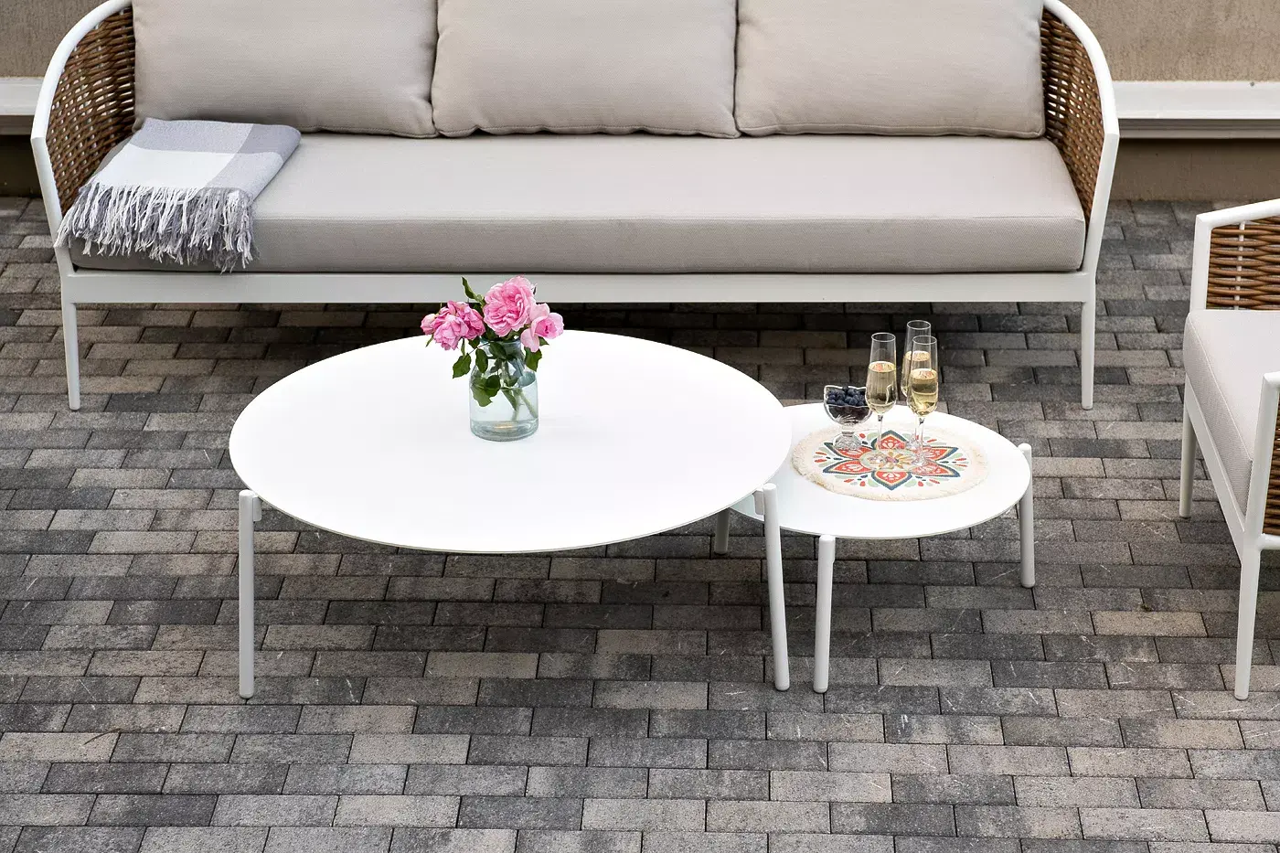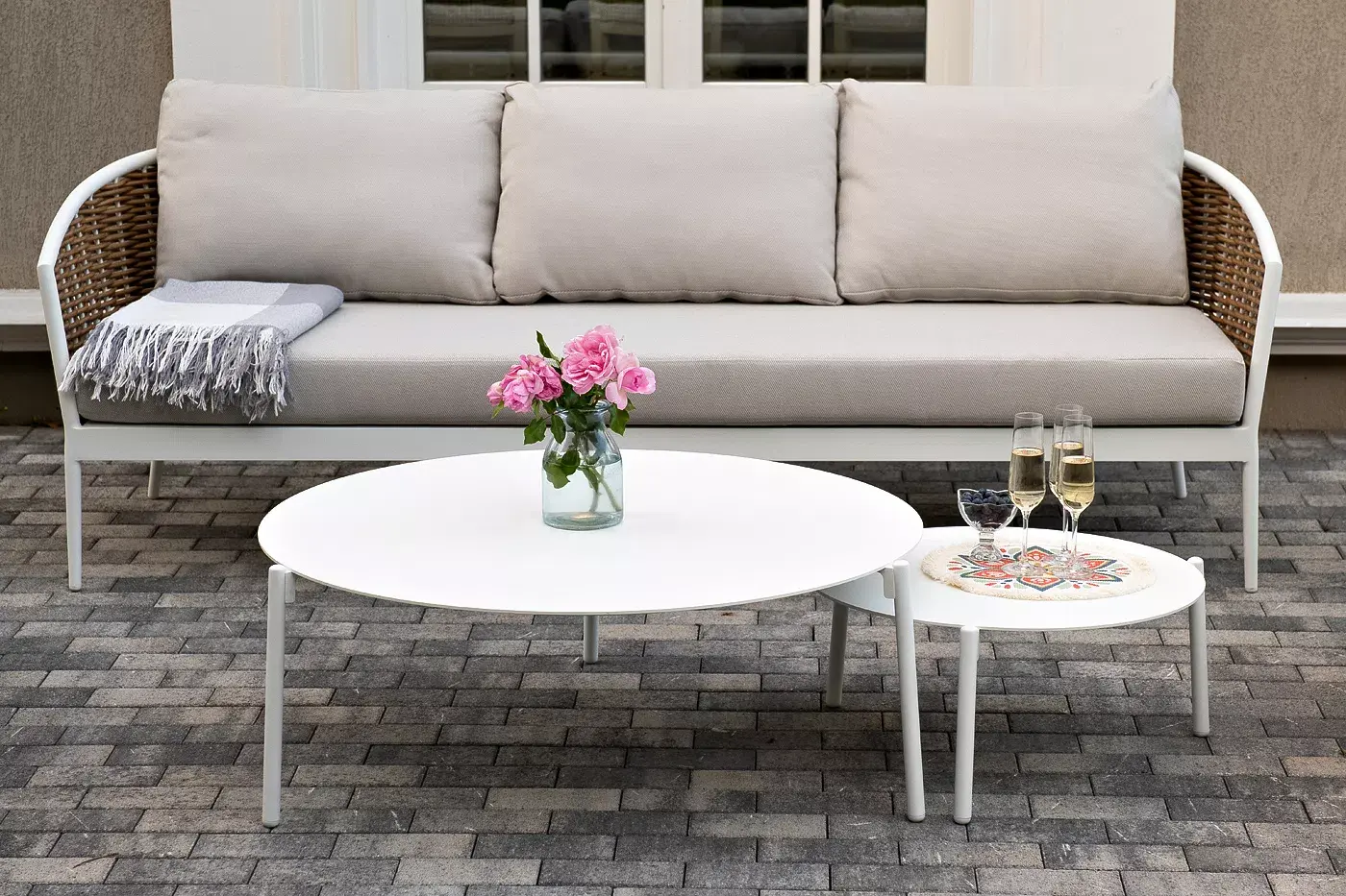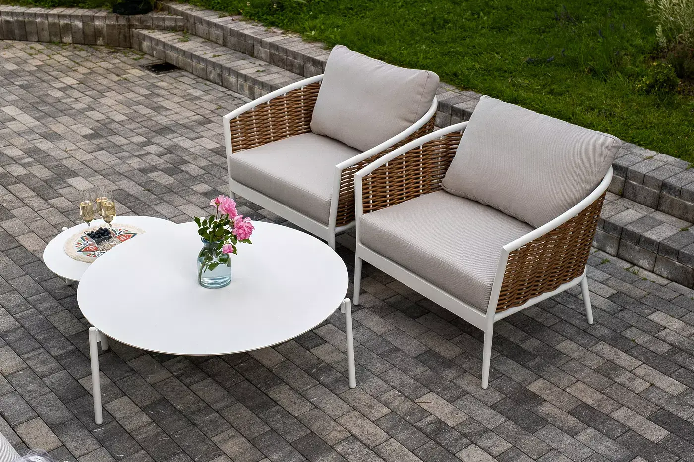 Журнальные столики выполнены из алюминия белого цвета.
