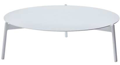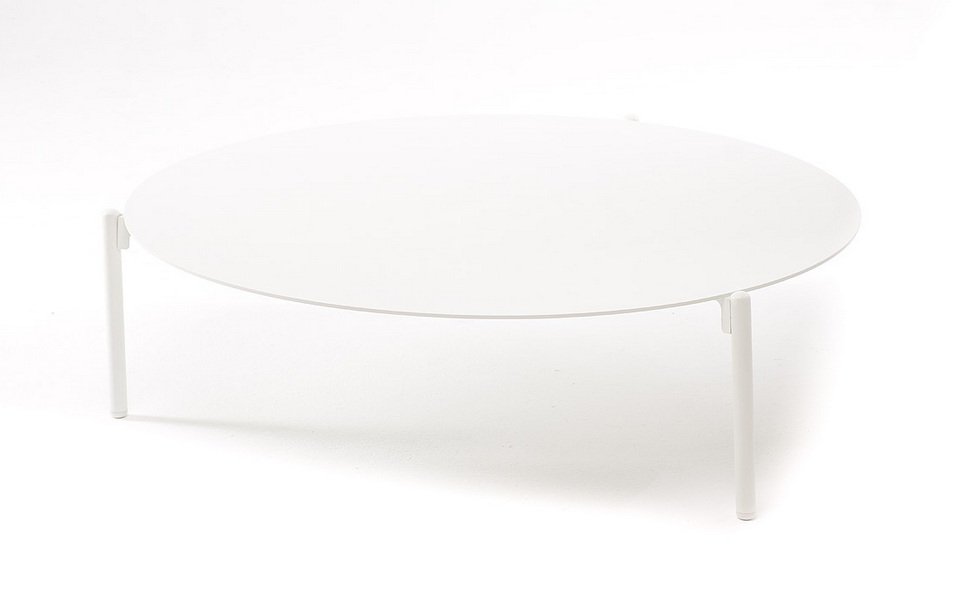 Круглый журнальный столик «Тоскана» изготовлен из алюминия, окрашенного в белый цвет.