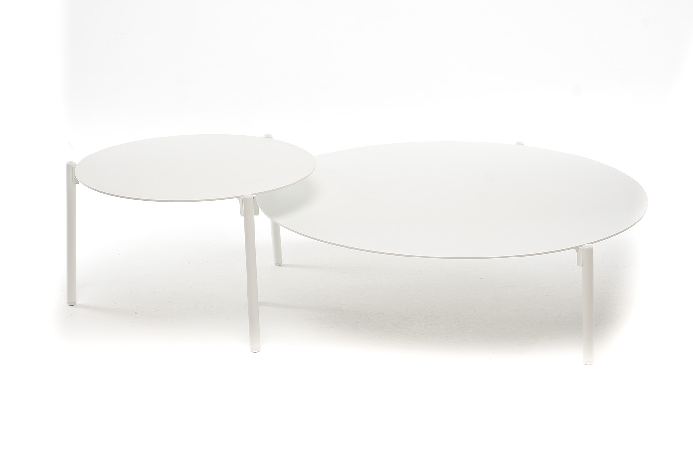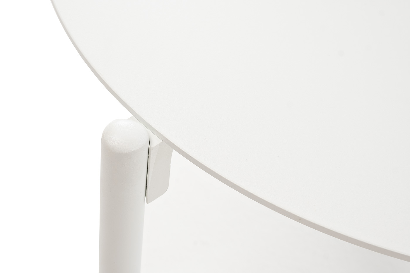 Круглый журнальный столик «Тоскана» изготовлен из алюминия, окрашенного в белый цвет.