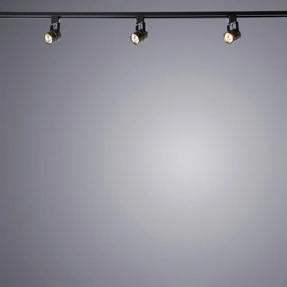 Трековый светильник Arte Lamp A1310PL-1BK в стиле хай-тек создает направленное освещение. Черный металлический корпус гармонично вписывается в современный интерьер. Модель монтируется на потолок, а плафон можно поворачивать, чтобы направить свет в нужную зону. Это практичное решение для акцентной подсветки деталей в жилых и коммерческих пространствах.