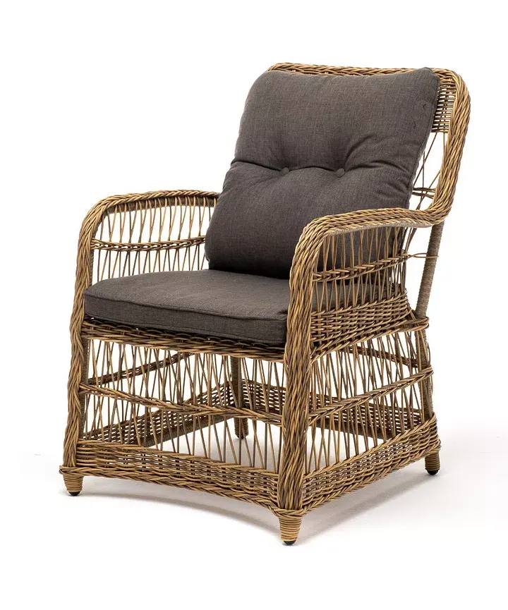 Алюминиевый каркас находится в основе мебели. Он характеризуется устойчивостью и высокой прочностью. Задекорирован ручной круглой оплеткой, которая сделана из искусственного ротанга. Представлена в соломенном оттенке.