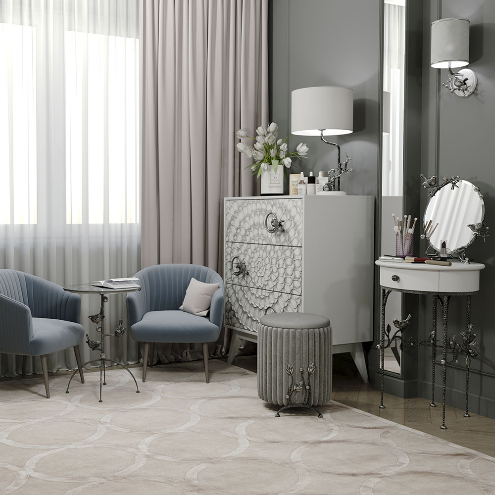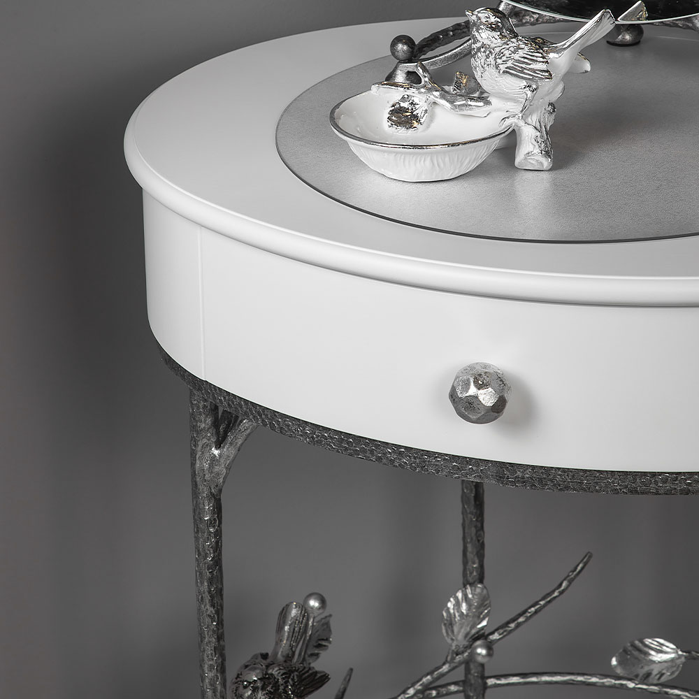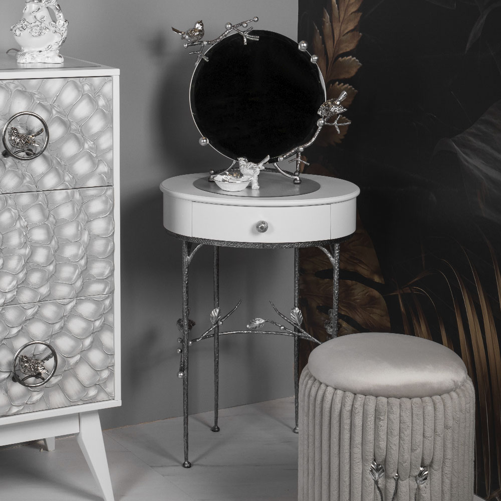Изысканный туалетный столик Терра Айс Античное серебро станет самой яркой деталью вашего будуара. Материалом изготовления изделия служит мдф, каркас выполнен из кованой легированной стали. Декоративные элементы отлиты из коелгинского мрамора, отшлифованы, а затем патинированы вручную.Туалетный столик BOGACHO – это утончённость вне времени. Добавьте в своё пространство стиля и выразительности с помощью эксклюзивных изделий бренда