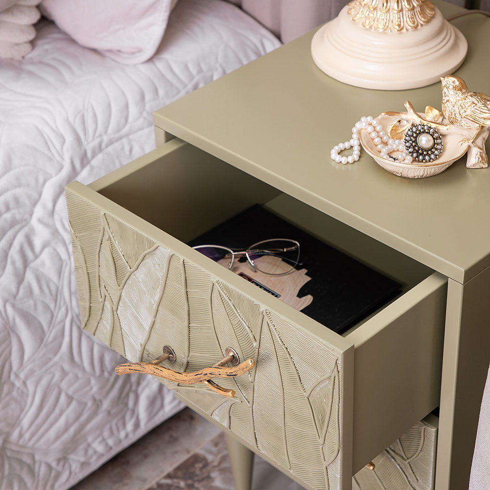 Тумба прикроватная - от российской фабрики мебели BOGACHO, эффектный предмет интерьера, который позволит создать в вашем доме изысканную обстановку. Прикроватная тумба – важный элемент мебели, без которого не обходится ни один дом или квартира. Эстетика и Оригинальный дизайнОбладая оригинальным авторским дизайном, тумба выделяется оригинальным фасадом. Изюминка изделия – шикарная кованая ручка в форме ветви дерева – ручная работа кузнеца. Настоящее украшение для комнаты, она отлично вписывается в современный интерьер.Комод для спальни снабжен качественной фурнитурой, которая обеспечивает плавный ход механизма на долгие годы. Материалом изготовления изделия служит МДФ. ФункциональностьТумба – это одно из главных украшений интерьера в гостиную, в спальню, в детскую и даже гараж. Тумбу с выдвижным ящиком можно использовать для размещения настольных сувениров, фотографий, журналов и книг, светильников. Тумба с ящиком - необходимая часть мебели для офиса. В спальне человек проводит очень много своего времени, поэтому нельзя недооценивать удобство маленькой, узкой тумбочки, которую можно использовать не только для хранения мелких вещей, но и для белья, одежды или косметики. Тумбочка с ящиком будет хорошо смотреться с кроватью и с диваном. КомпактностьМаленькая тумбочка станет настоящей находкой для тех, кому нужно обставить скромное по площади помещение, такие как балкон, ванная или коридор, эта мебель не займет много места. Несмотря на свои компактные размеры, она очень функциональна. Благодаря своим размерам тумбочка подойдет даже для маленькой квартиры.Тумбочка в прихожую не отнимает пространства, напротив, экономит его, выглядит очень красиво, современно и стильно. Используйте ее как мебель в спальню, она не занимает много места, при этом позволит хранить в ящике все нужные принадлежности. Она украсит интерьер и станет незаменимой мебелью для полной комплектации как квартир, так и номеров. Практичность и Простота уходаТумба изготовлена из высококачественного МДФ. Покрытие износостойкое, не требует особого ухода. Достаточно протереть поверхность слегка влажной тряпочкой. Ручка выполнена из кованой стали. Единый стильЛюбите, чтобы интерьер был в едином стиле? Присмотритесь к другой мебели фабрики BOGACHO, которая будет гармонично сочетаться друг с другом. Высота опор тумбы - 200 мм