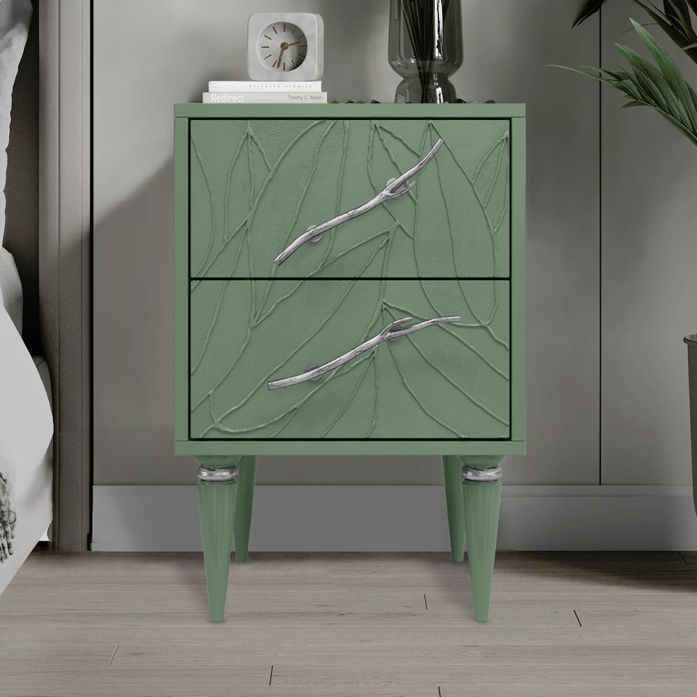 Эстетика и оригинальный дизайн Обладая оригинальным авторским дизайном, тумба выделяется оригинальным фасадом. Изюминка изделия – шикарная кованая ручка в форме ветви дерева – ручная работа кузнеца. Настоящее украшение для комнаты, она отлично вписывается в современный интерьер.Комод для спальни снабжен качественной фурнитурой, которая обеспечивает плавный ход механизма на долгие годы. Материалом изготовления изделия служит МДФ.