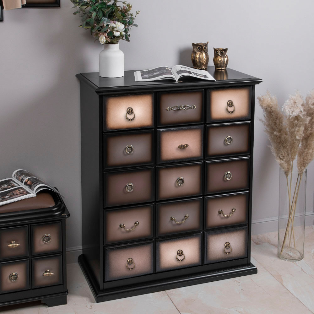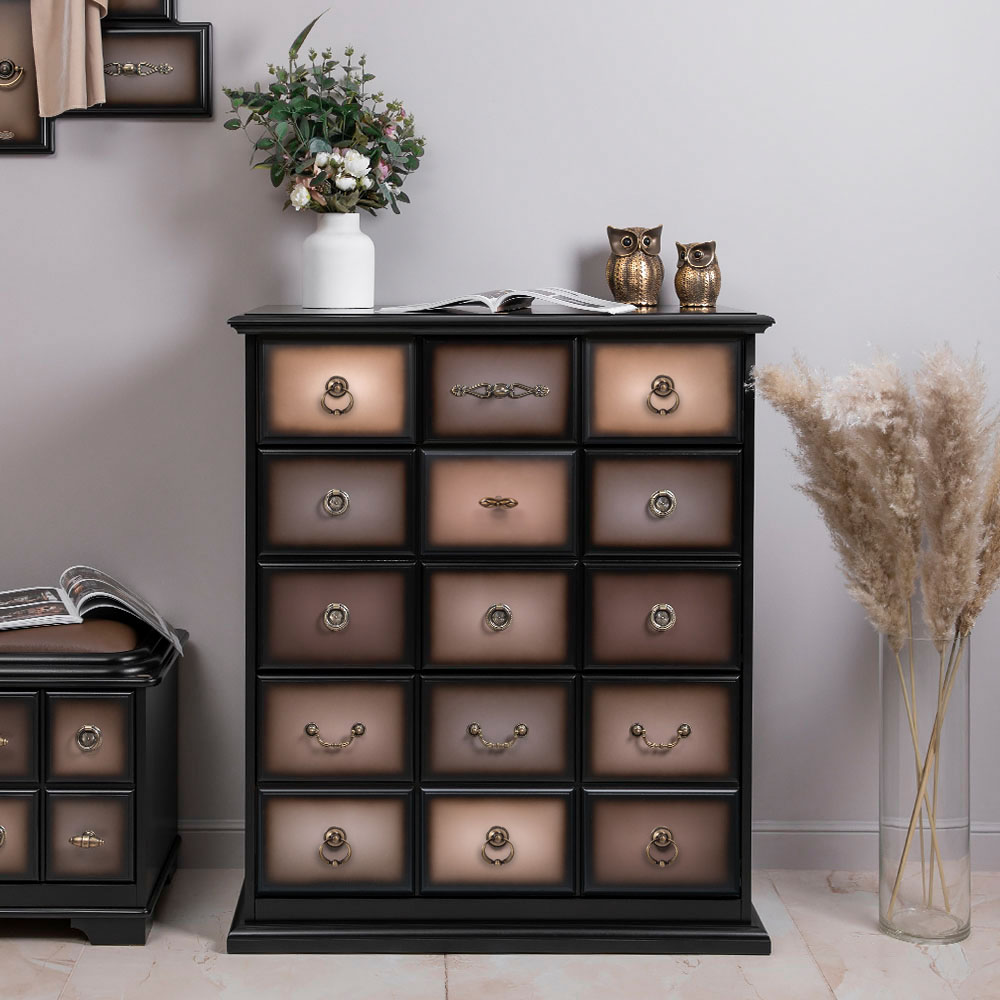 Материалы изготовления и размеры изделияКаркас тумбы и ящики выполнены из высококачественной МДФ. Поверхность тонирована, патинирована и покрыта лаком. Ящики выполнены из мдф. Фурнитура из латуни испанского производства.