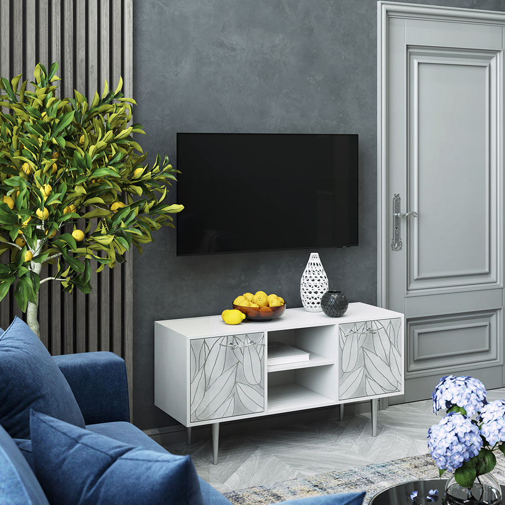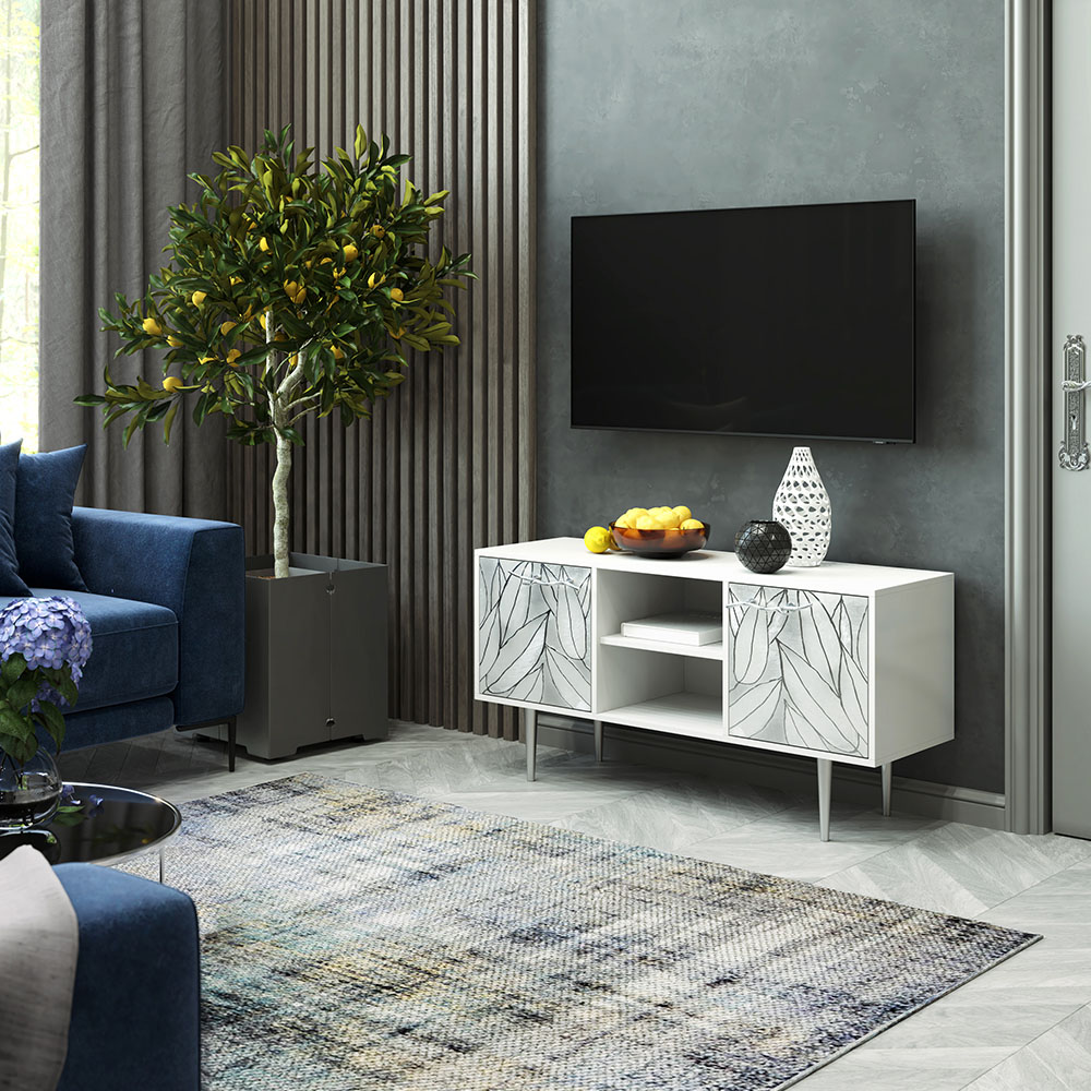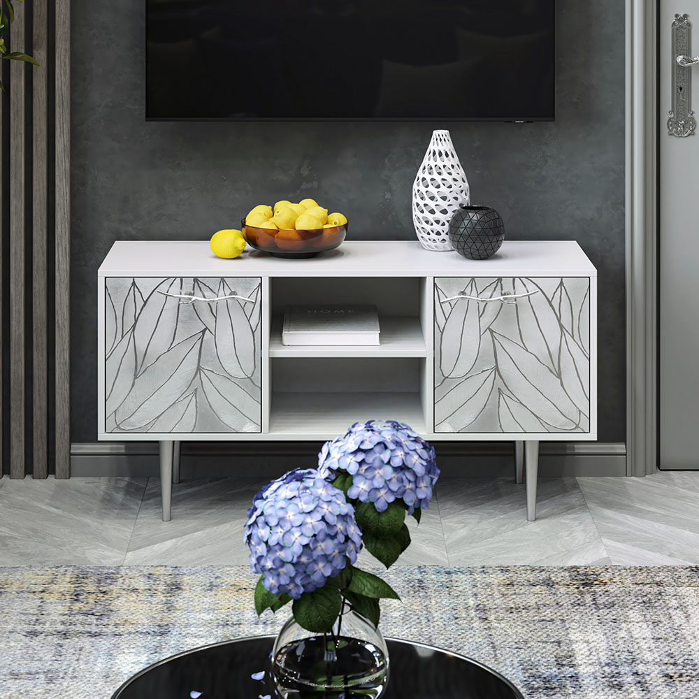 Дизайн тумбочки под тв Арт можно отнести к направлению сканди. Это современный стиль, который удачно подходит практически под любой интерьер.