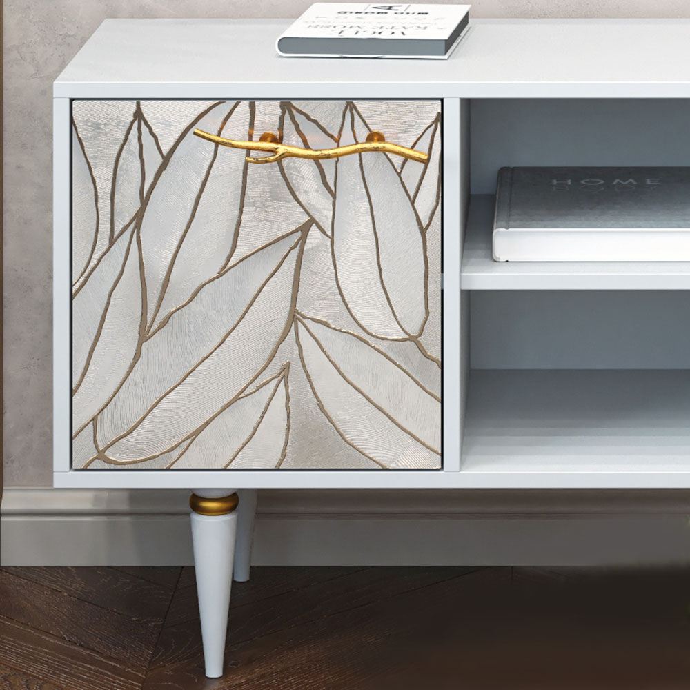 От внешнего вида тумбы в сочетании с экраном телевизора зависит и восприятие всей комнаты. Тумба Арт идеально подходит к самым распространенным моделям экрана: от 50” и больше. При этом закрепить девайс можно как к прилегающей стене, так и разместить его на подставке на самой поверхности тумбы.
