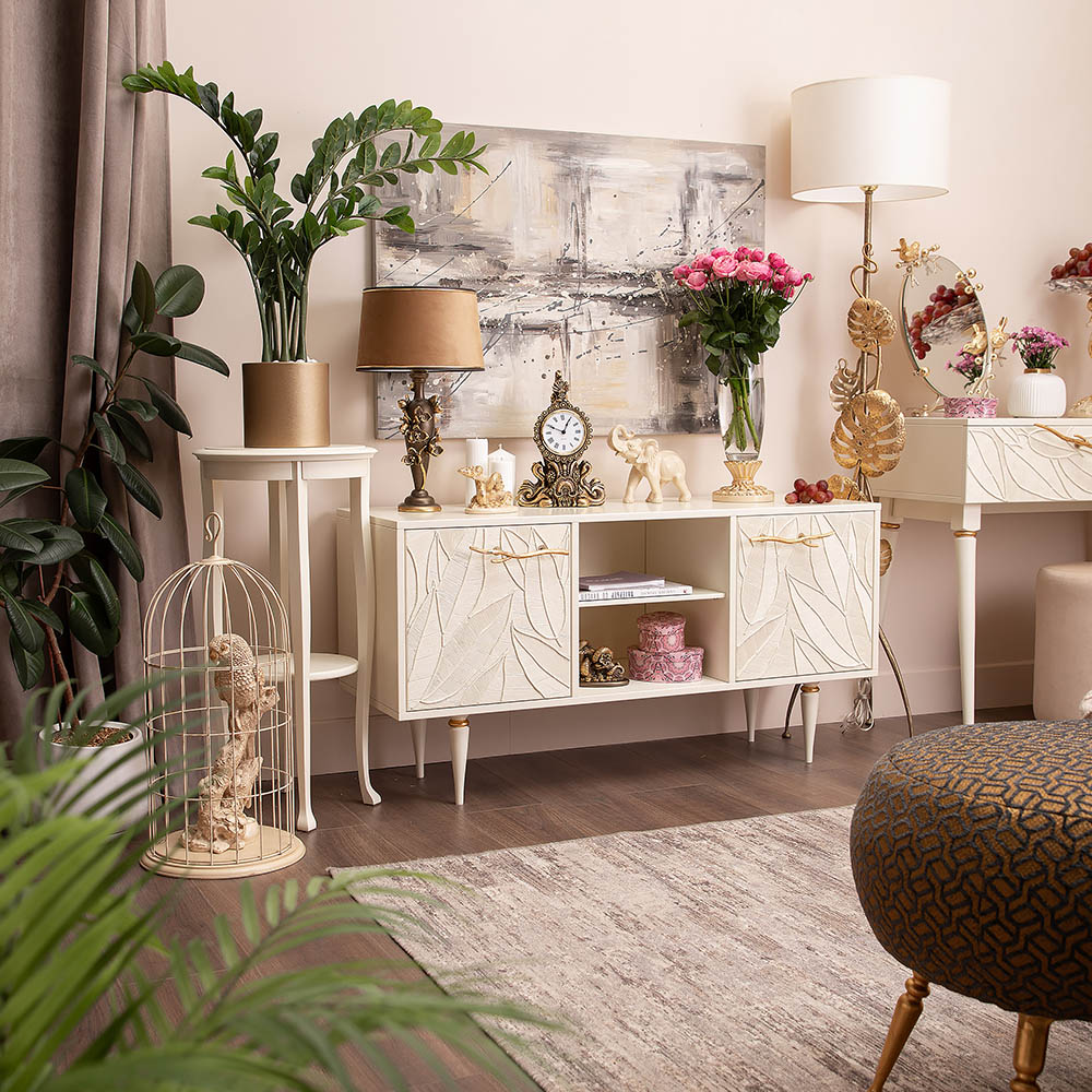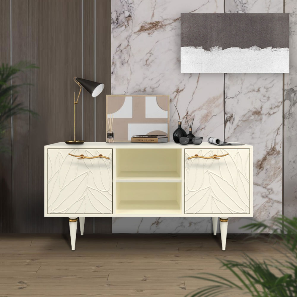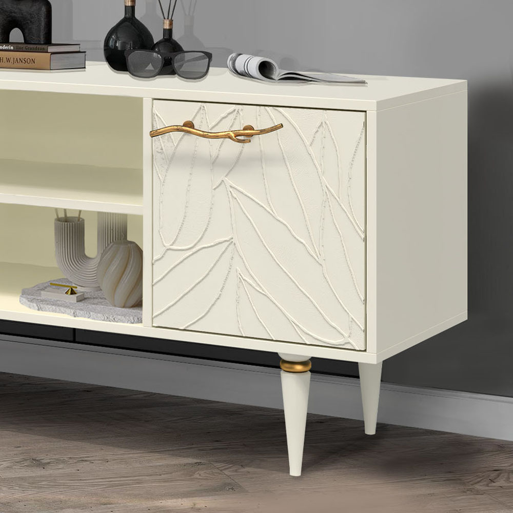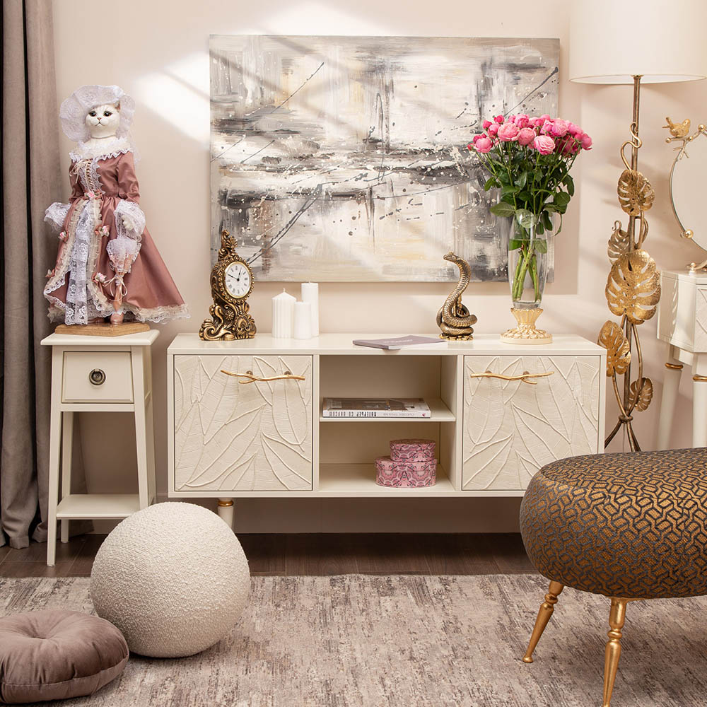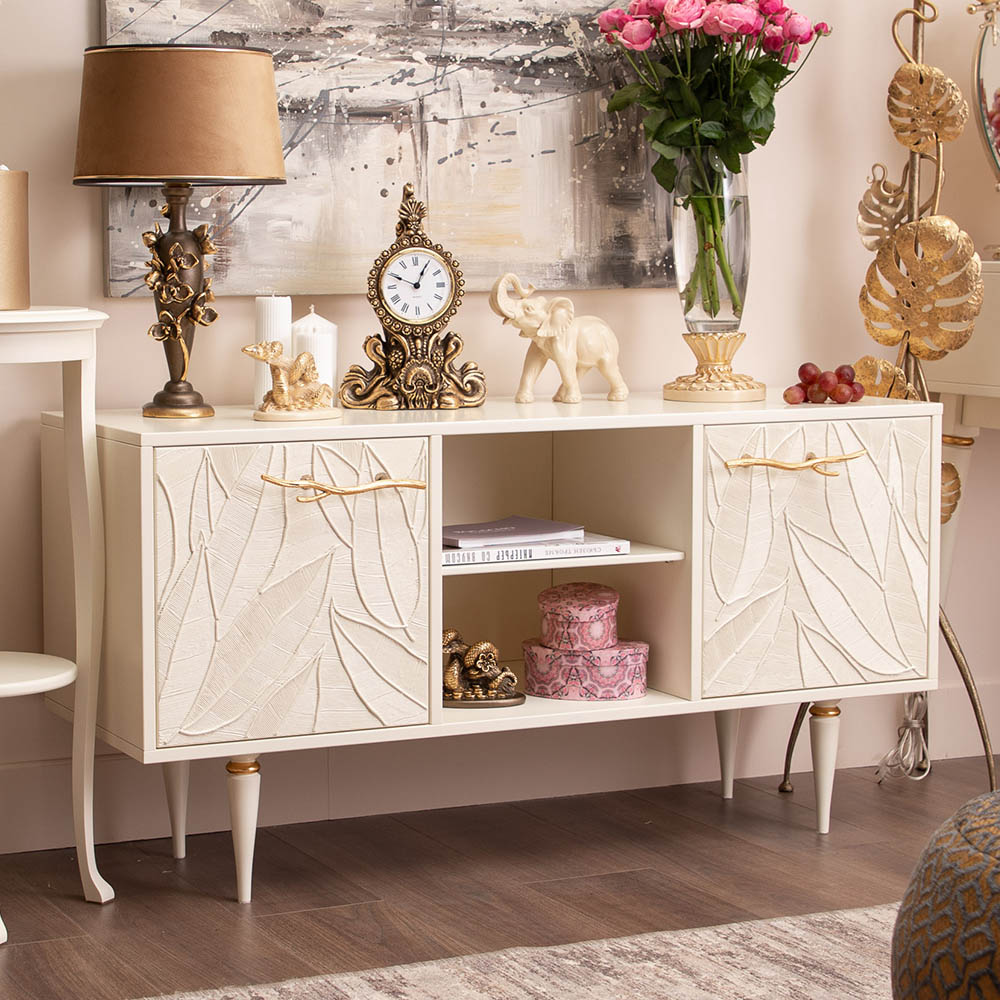 Тумба под ТВ Арт Колор leaves 117см Классик Голд Кремовый белый