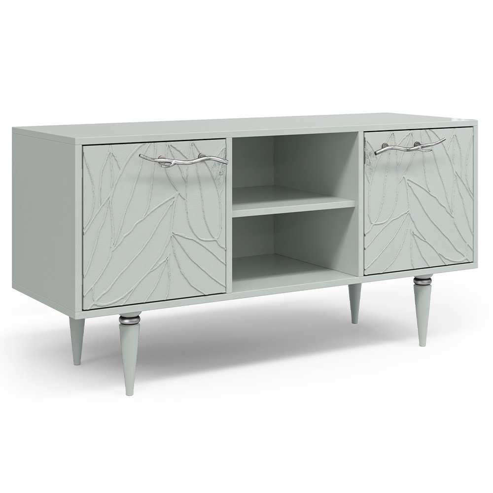 Кованая ручка, авторская роспись фасадов мраморной пудрой, на изящных ножках, создающих эффект парения, – все это делает этот предмет мебели настоящим украшением в гостиную.