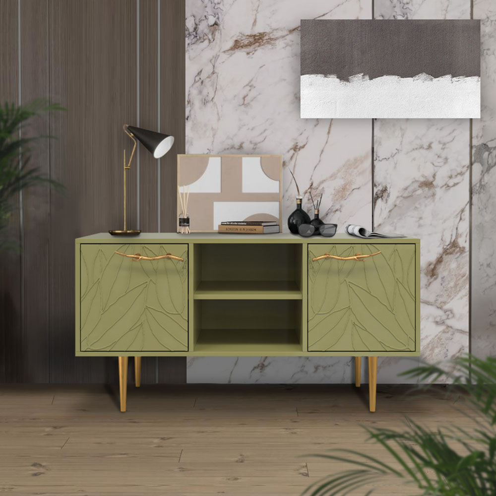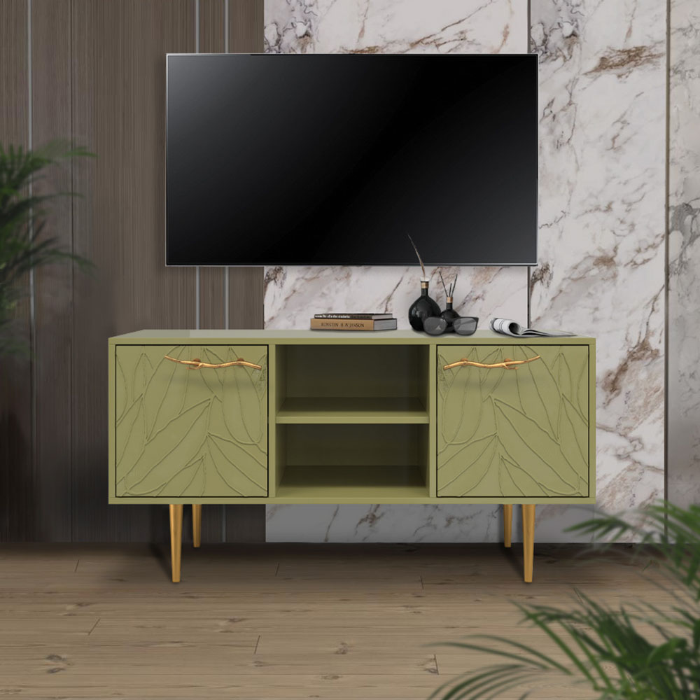 Тумба под ТВ Арт Колор leaves 117см Стайл Голд Зеленая олива