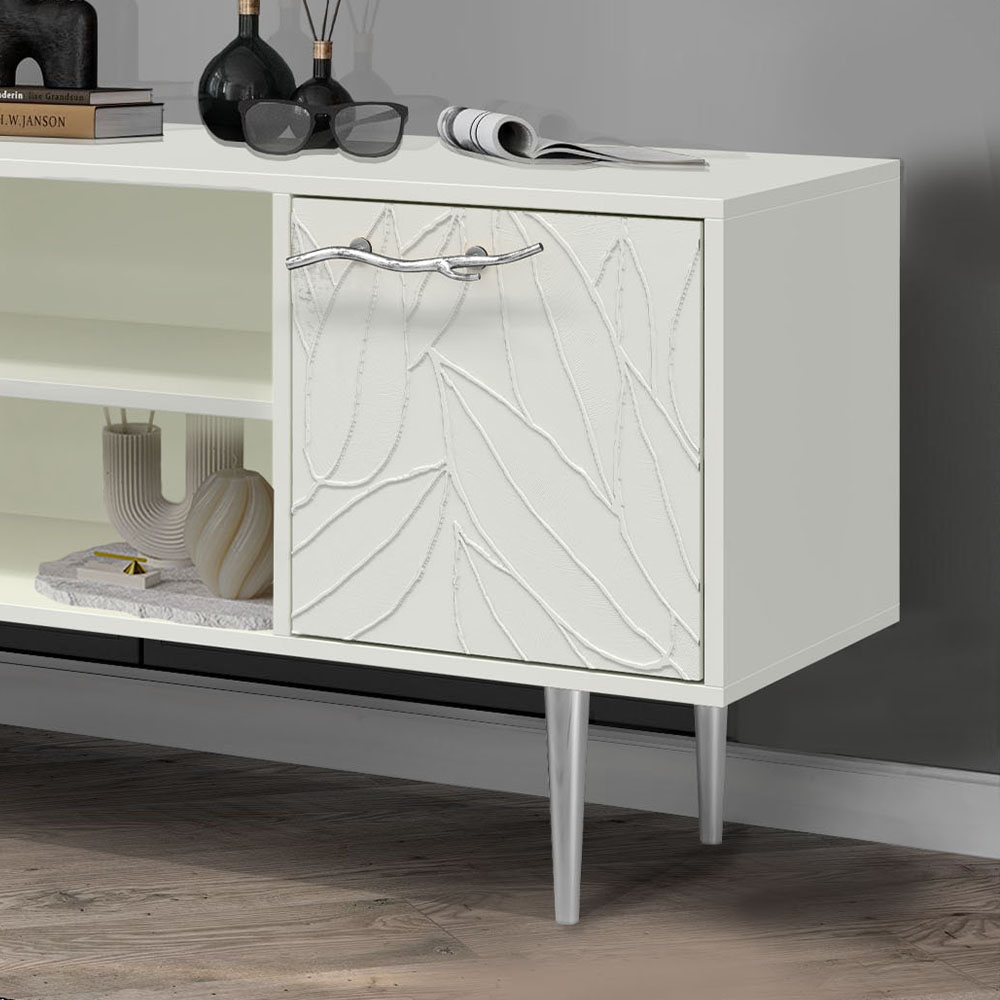 Тумба под ТВ Арт Колор leaves 117см Стайл Сильвер Белый опал