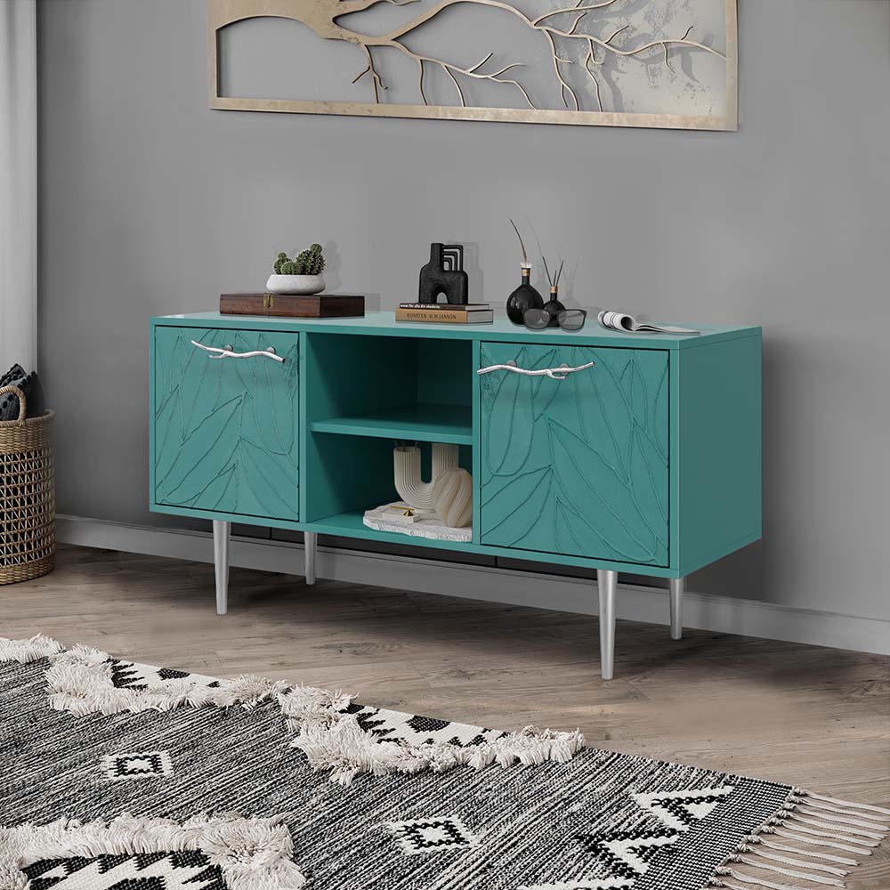 Тумба под ТВ Арт Колор leaves 117см Стайл Сильвер Пастельно-синий