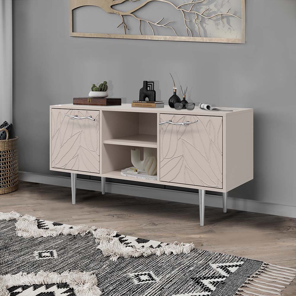ТВ-тумба – тот предмет интерьера, в котором крайне важны не только эргономичность, но и декоративная функция. Ведь подставка под телевизор, как правило, размещается в основной части комнаты, где чаще всего собирается вся семья и гости. Дизайн тумбочки под тв Арт можно отнести к направлению сканди. Это современный стиль, который удачно подходит практически под любой интерьер. Однако минимализм от Bogacho несколько отличается от классического понимания. Это чистые оттенки и простые линии форм, доведенные до совершенства оригинальным декором. Кованая ручка, авторская роспись фасадов мраморной пудрой, на изящных ножках, создающих эффект парения, – все это делает этот предмет мебели настоящим украшением в гостиную. Если использовать тумбу в качестве подставки для декора, книг, ваз, свечей, то она вполне может заменить классический комод для вещей в спальне. С задачей компактного хранения тумбочка также отлично справляется: имеются два закрытых отделения с вместительными полками и одно отделение для открытого хранения. Например, журналов или статуэток. Максимальная нагрузка - до 80кг. Высота ножек - 19,8 см.