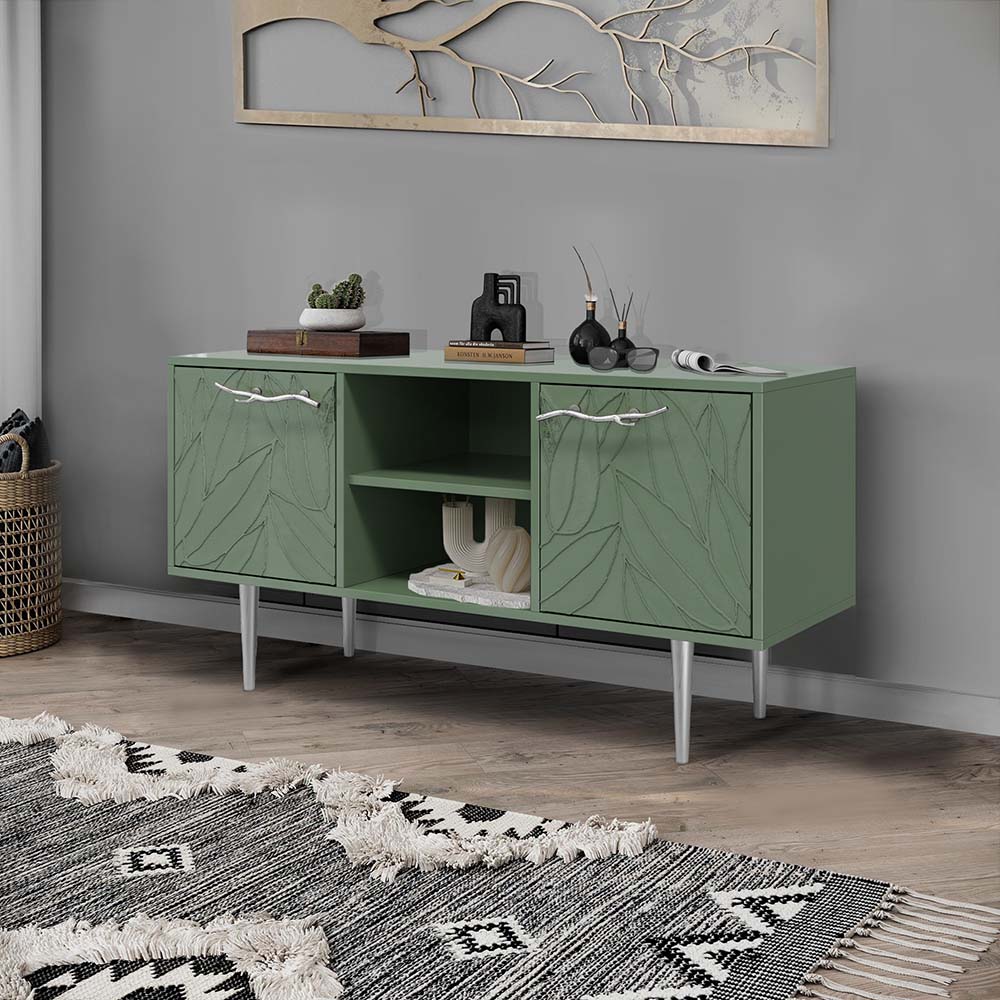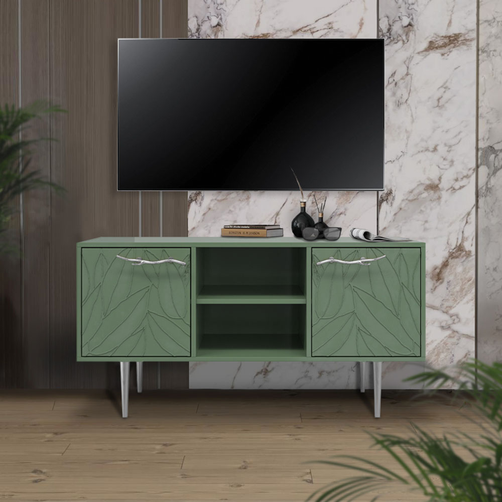 Тумба под ТВ Арт Колор leaves 117см Стайл Сильвер Зеленый нефрит