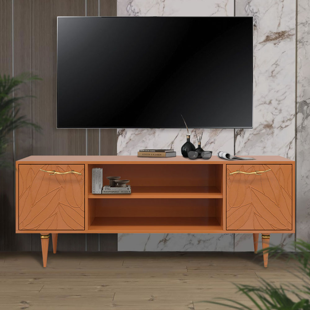 Тумба под ТВ Арт Колор leaves 155см Классик Голд Томленый оранжевый