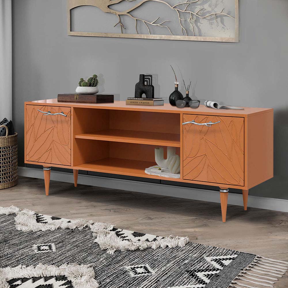 Тумба под ТВ Арт Колор leaves 155см Классик Сильвер Томленый оранжевый