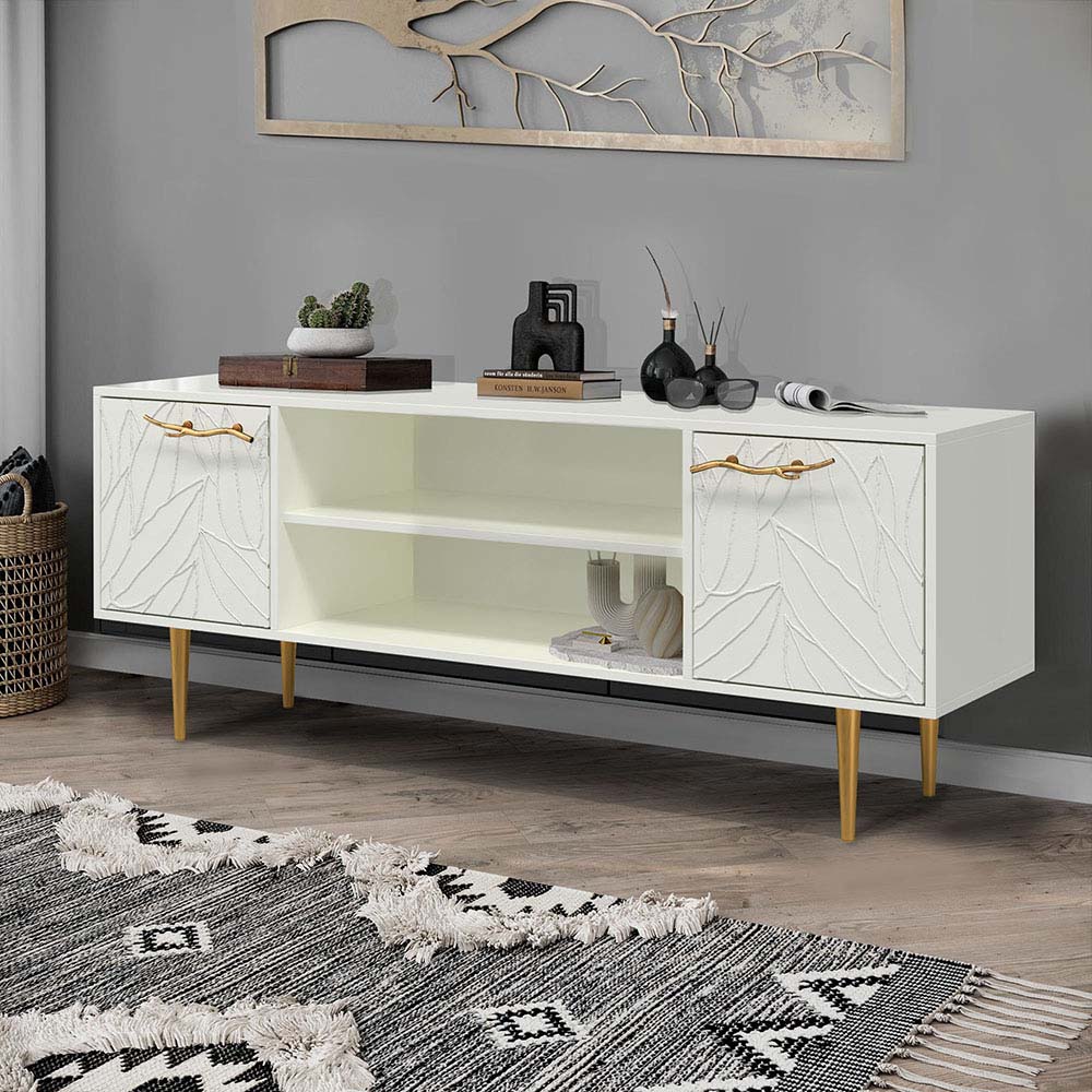 Тумба под ТВ Арт Колор leaves 155см Стайл Голд Белый опал