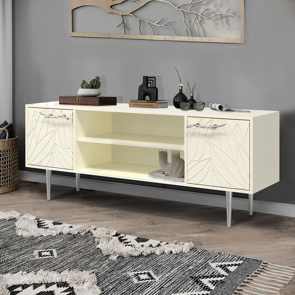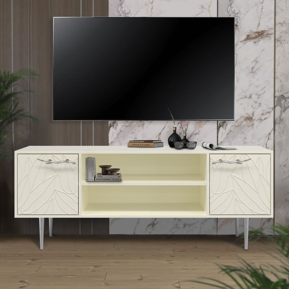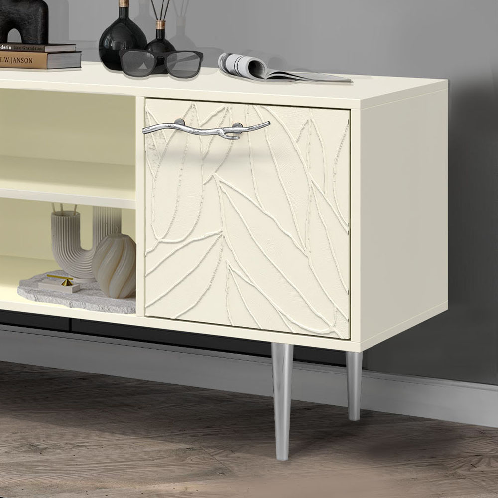 Тумба под ТВ Арт Колор leaves 155см Стайл Сильвер Кремовый белый