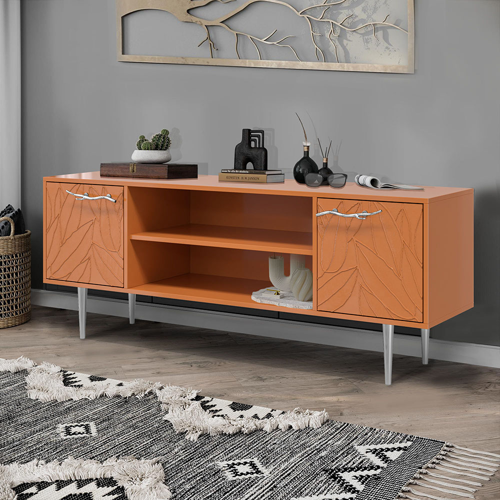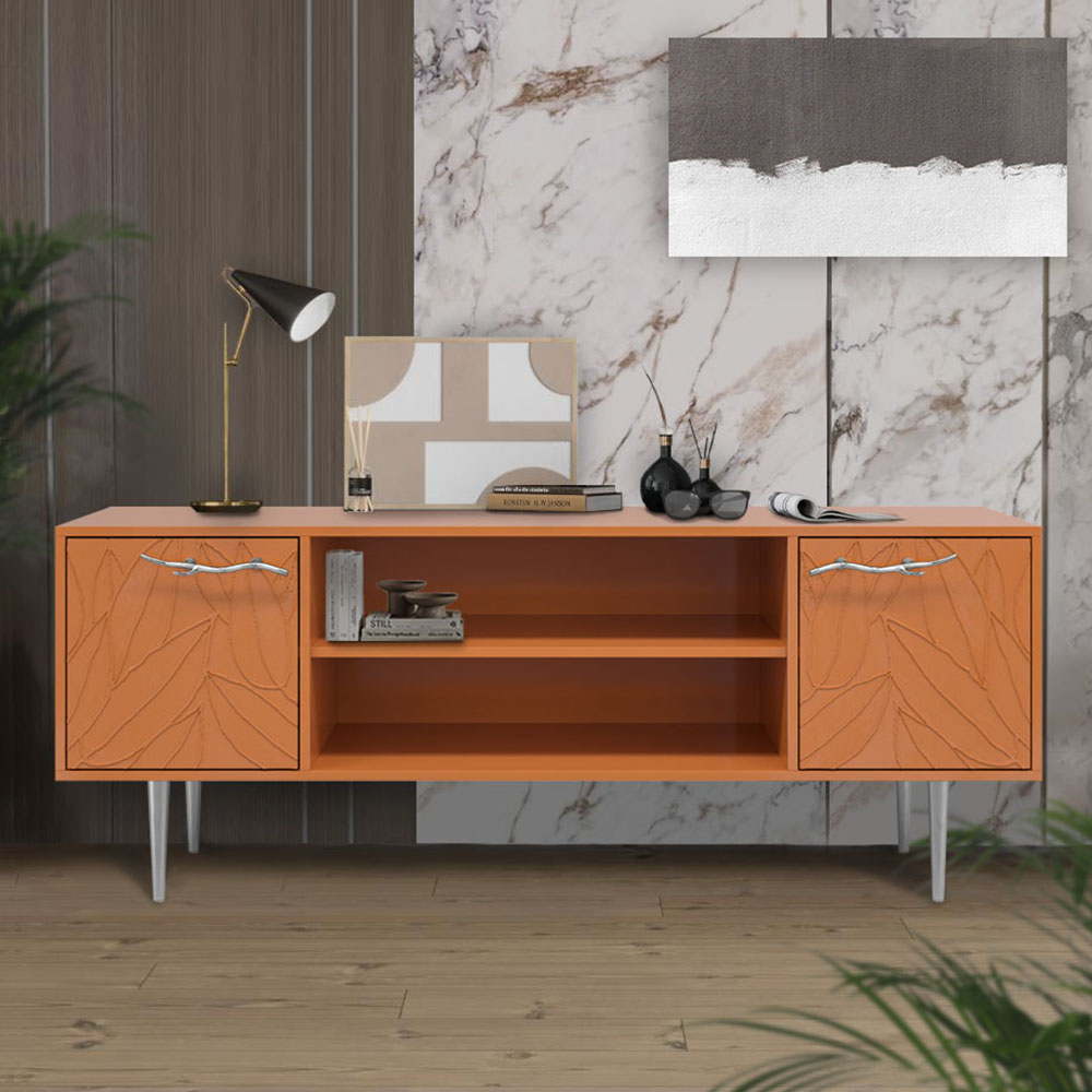 Тумба под ТВ Арт Колор leaves 155см Стайл Сильвер Томленый оранжевый