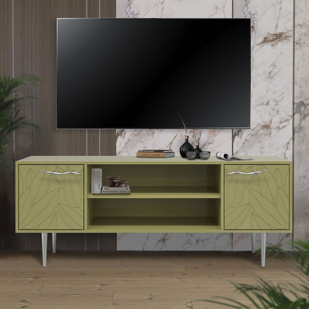 Тумба под ТВ Арт Колор leaves 155см Стайл Сильвер Зеленая олива