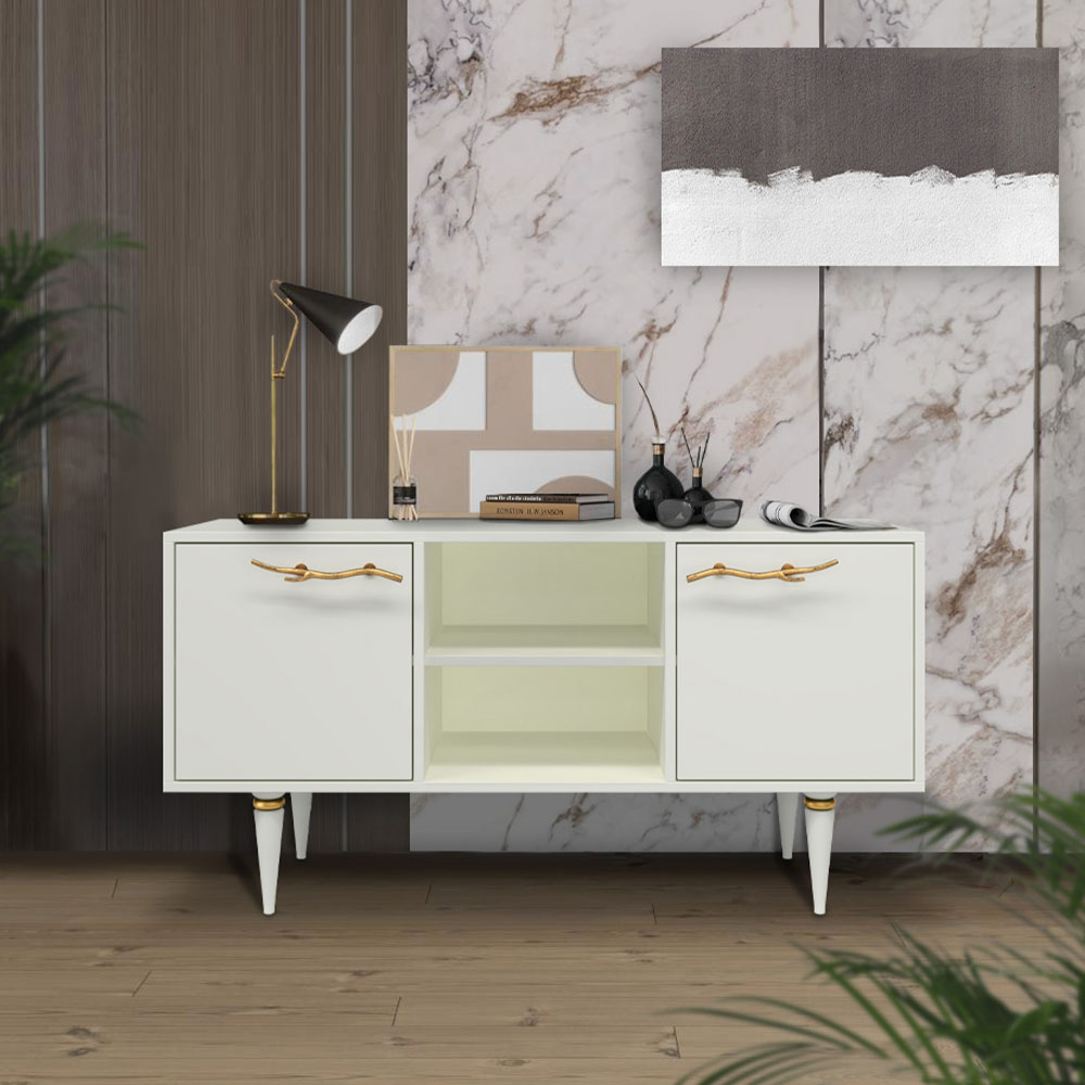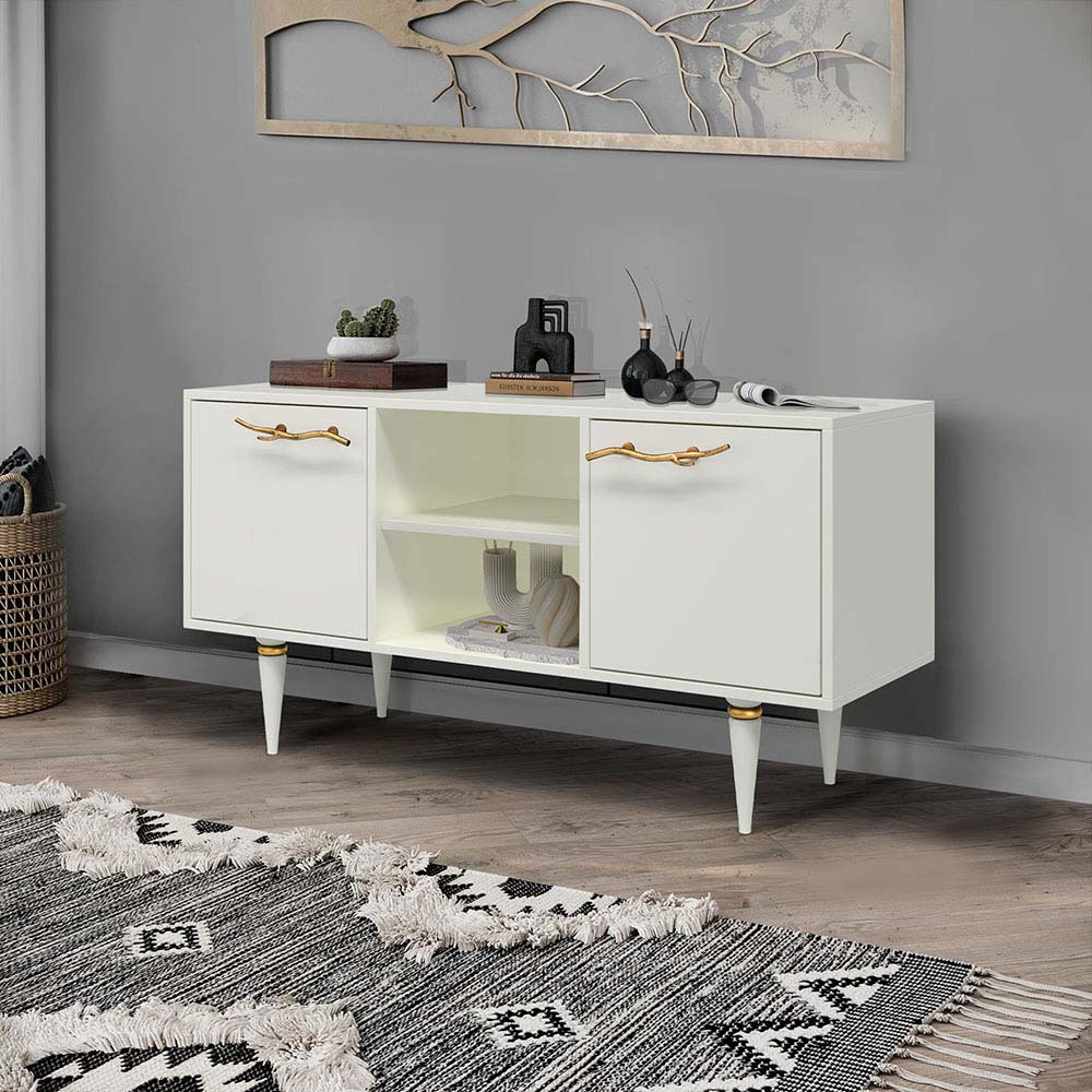 Тумба под ТВ Арт Колор matte 117см Классик Голд Белый опал матовый