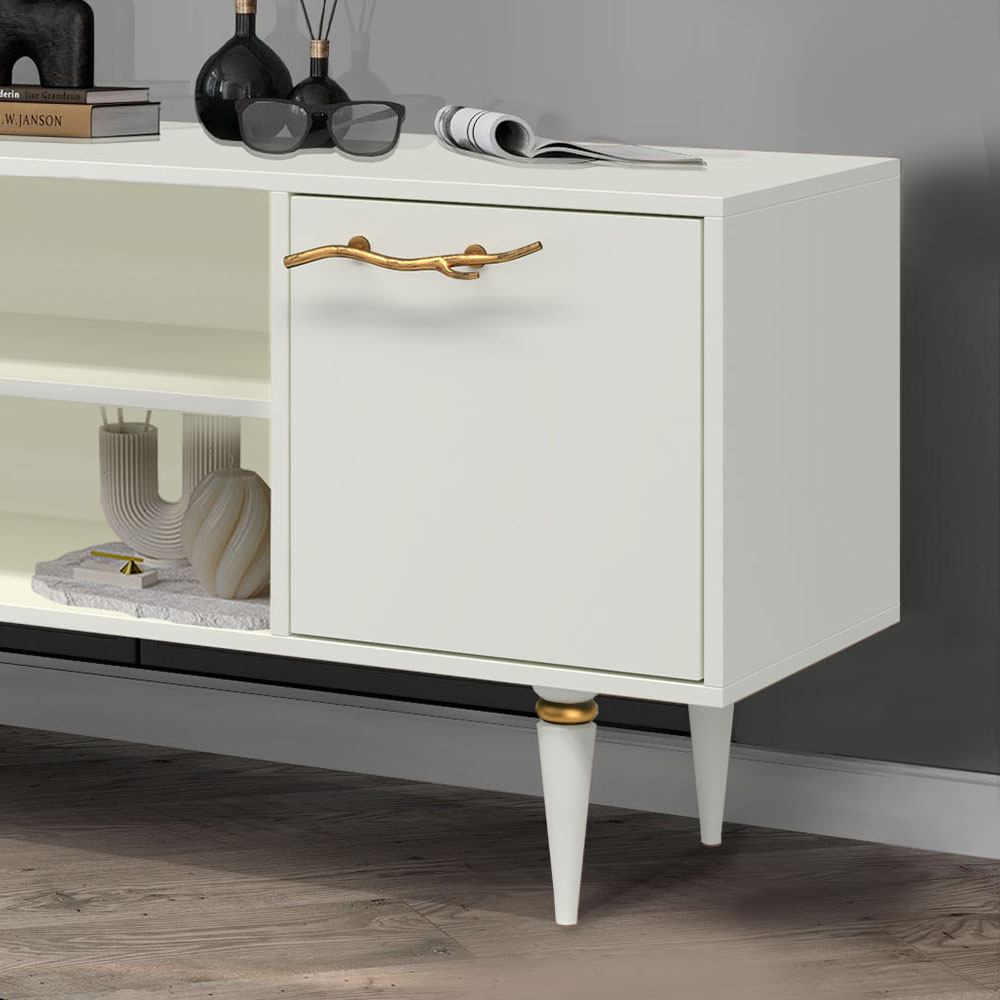 Тумба под ТВ Арт Колор matte 117см Классик Сильвер Белый опал матовый