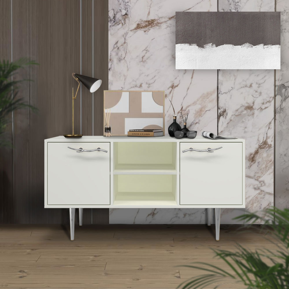ТВ-тумба – тот предмет интерьера, в котором крайне важны не только эргономичность, но и декоративная функция. Ведь подставка под телевизор, как правило, размещается в основной части комнаты, где чаще всего собирается вся семья и гости. Дизайн тумбочки под тв Арт можно отнести к направлению сканди. Это современный стиль, который удачно подходит практически под любой интерьер. Однако минимализм от Bogacho несколько отличается от классического понимания. Это чистые оттенки и простые линии форм, доведенные до совершенства оригинальным декором. Если использовать тумбу в качестве подставки для декора, книг, ваз, свечей, то она вполне может заменить классический комод для вещей в спальне. С задачей компактного хранения тумбочка также отлично справляется: имеются два закрытых отделения с вместительными полками и одно отделение для открытого хранения. Например, журналов или статуэток. Максимальная нагрузка - до 80кг. Высота ножек - 19,8 см.