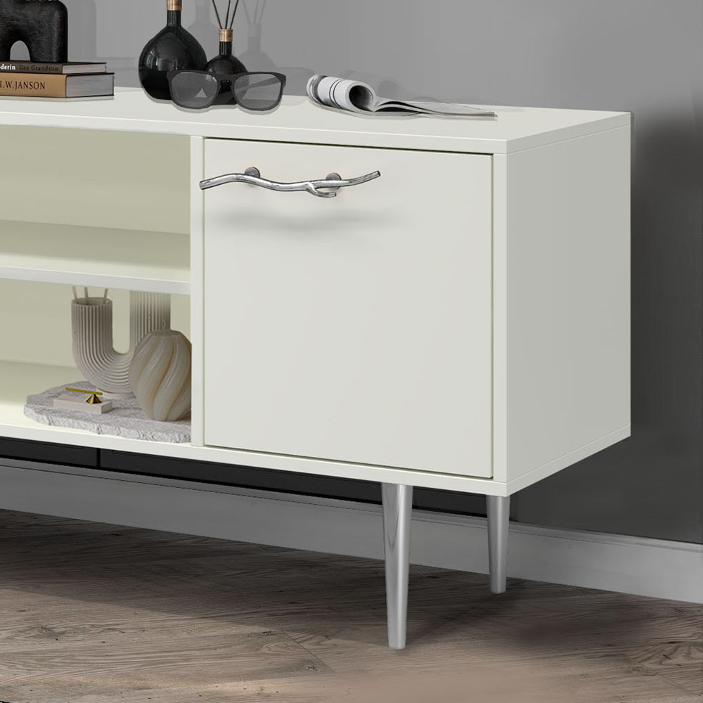 Тумба под ТВ Арт Колор matte 117см Стайл Сильвер Белый опал матовый