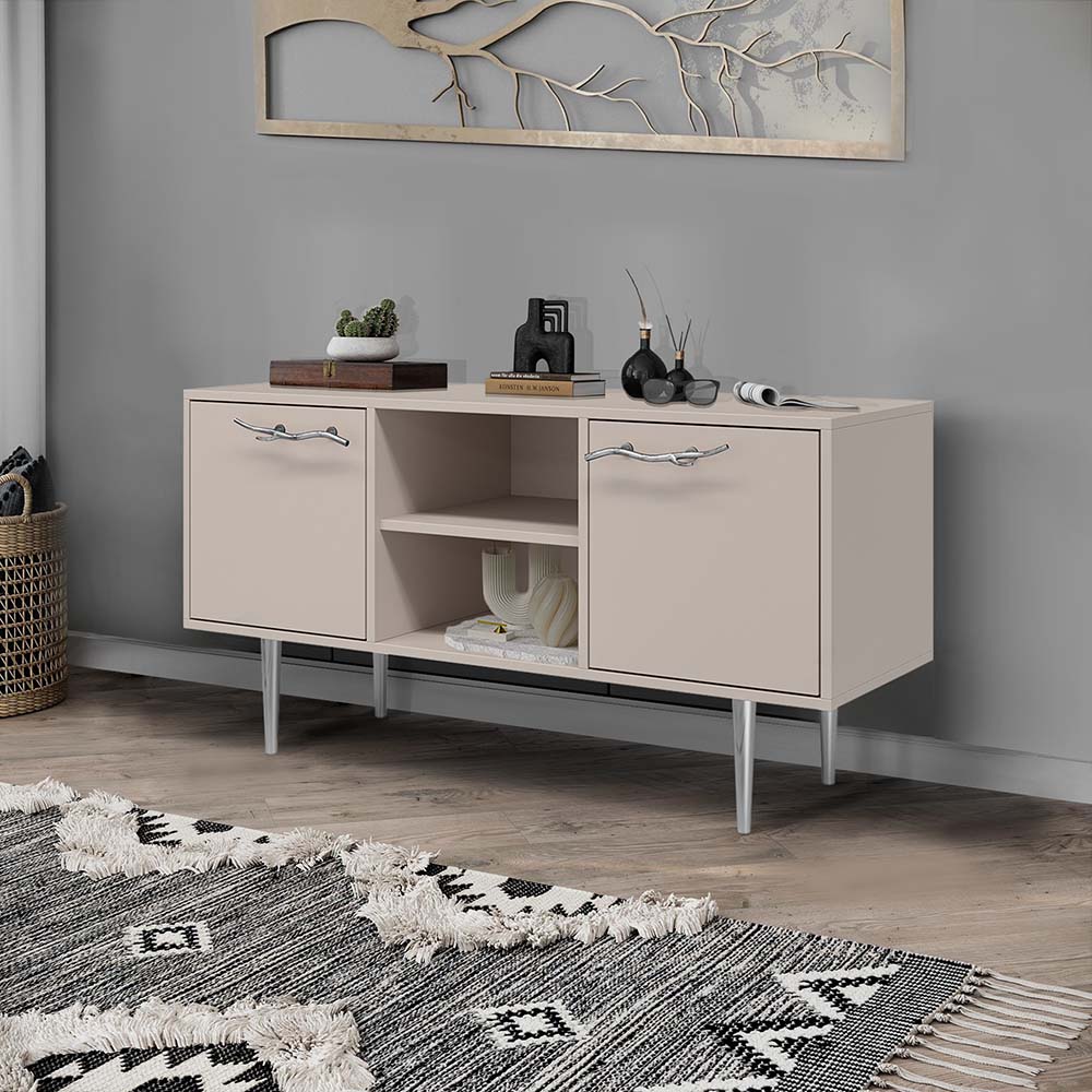 Тв-тумба – тот предмет интерьера, в котором крайне важны не только эргономичность, но и декоративная функция. Ведь подставка под телевизор, как правило, размещается в основной части комнаты, где чаще всего собирается вся семья и гости. Дизайн тумбочки под тв Арт можно отнести к направлению сканди. Это современный стиль, который удачно подходит практически под любой интерьер. Однако минимализм от Bogacho несколько отличается от классического понимания. Это чистые оттенки и простые линии форм, доведенные до совершенства оригинальным декором. Если использовать тумбу в качестве подставки для декора, книг, ваз, свечей, то она вполне может заменить классический комод для вещей в спальне. С задачей компактного хранения тумбочка также отлично справляется: имеются два закрытых отделения с вместительными полками и одно отделение для открытого хранения. Например, журналов или статуэток. Максимальная нагрузка - до 80кг. Высота ножек - 19,8 см.