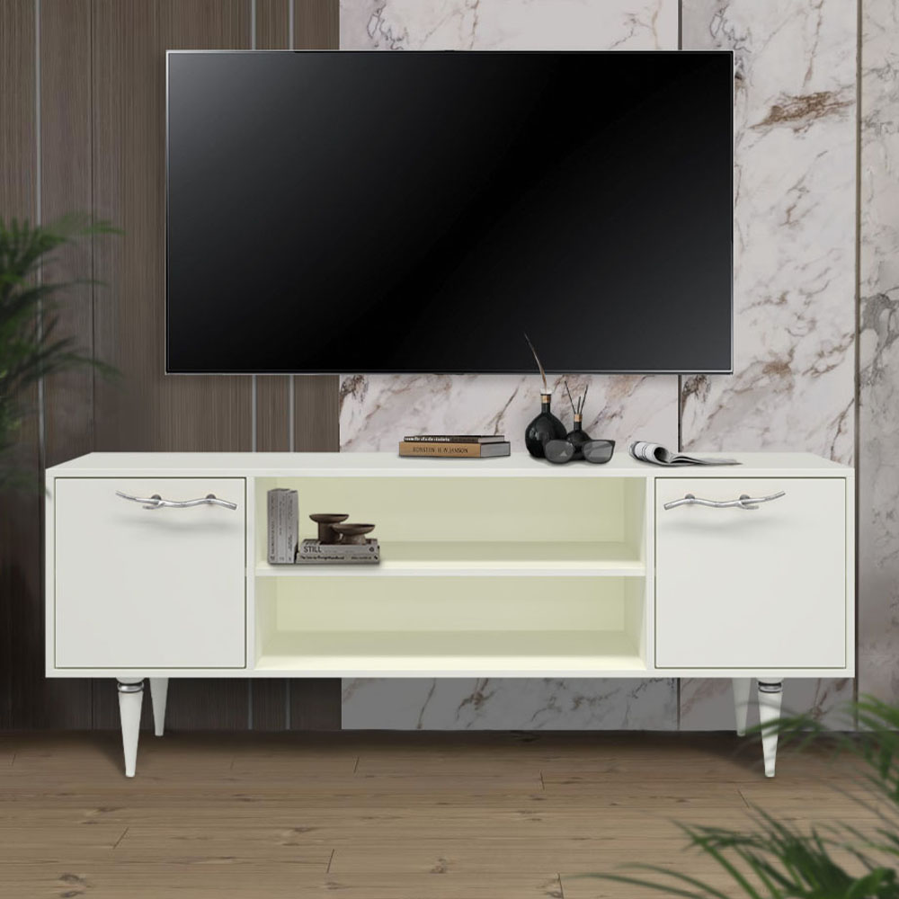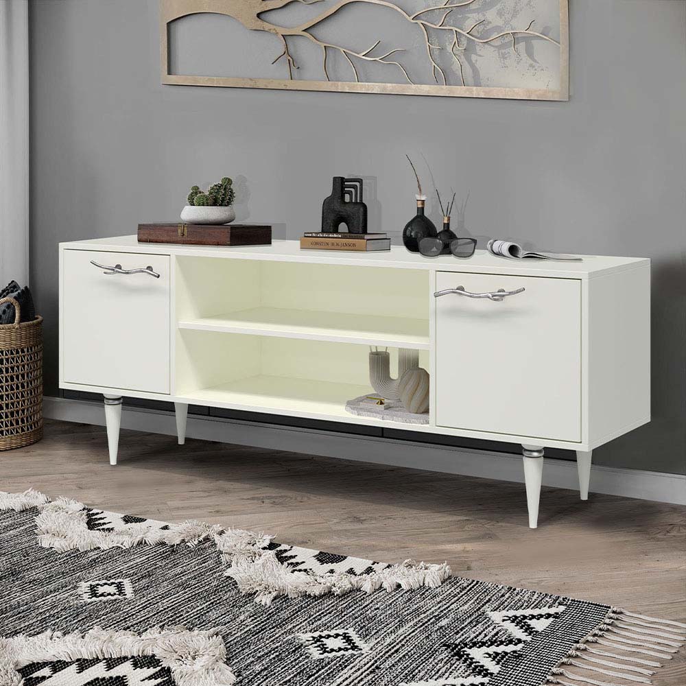 Тумба под ТВ Арт Колор matte 155см Классик Сильвер Белый опал матовый