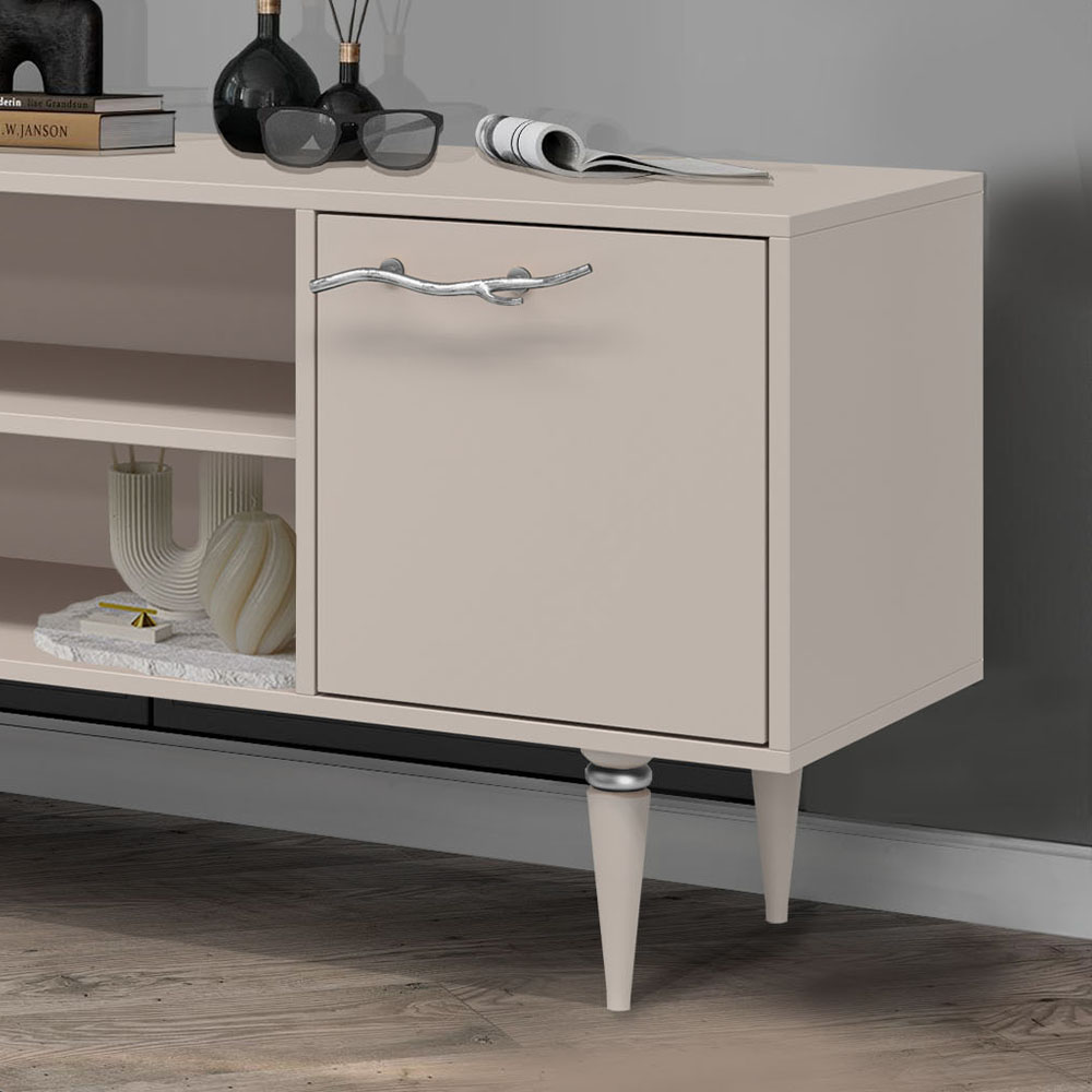 ТВ-тумба – тот предмет интерьера, в котором крайне важны не только эргономичность, но и декоративная функция. Ведь подставка под телевизор, как правило, размещается в основной части комнаты, где чаще всего собирается вся семья и гости. Дизайн тумбочки под тв Арт можно отнести к направлению сканди. Это современный стиль, который удачно подходит практически под любой интерьер. Однако минимализм от Bogacho несколько отличается от классического понимания. Это чистые оттенки и простые линии форм, доведенные до совершенства оригинальным декором. Если использовать тумбу в качестве подставки для декора, книг, ваз, свечей, то она вполне может заменить классический комод для вещей в спальне. С задачей компактного хранения тумбочка также отлично справляется: имеются два закрытых отделения с вместительными полками и одно отделение для открытого хранения. Например, журналов или статуэток. Максимальная нагрузка - до 80кг. Высота ножек - 19,8 см.