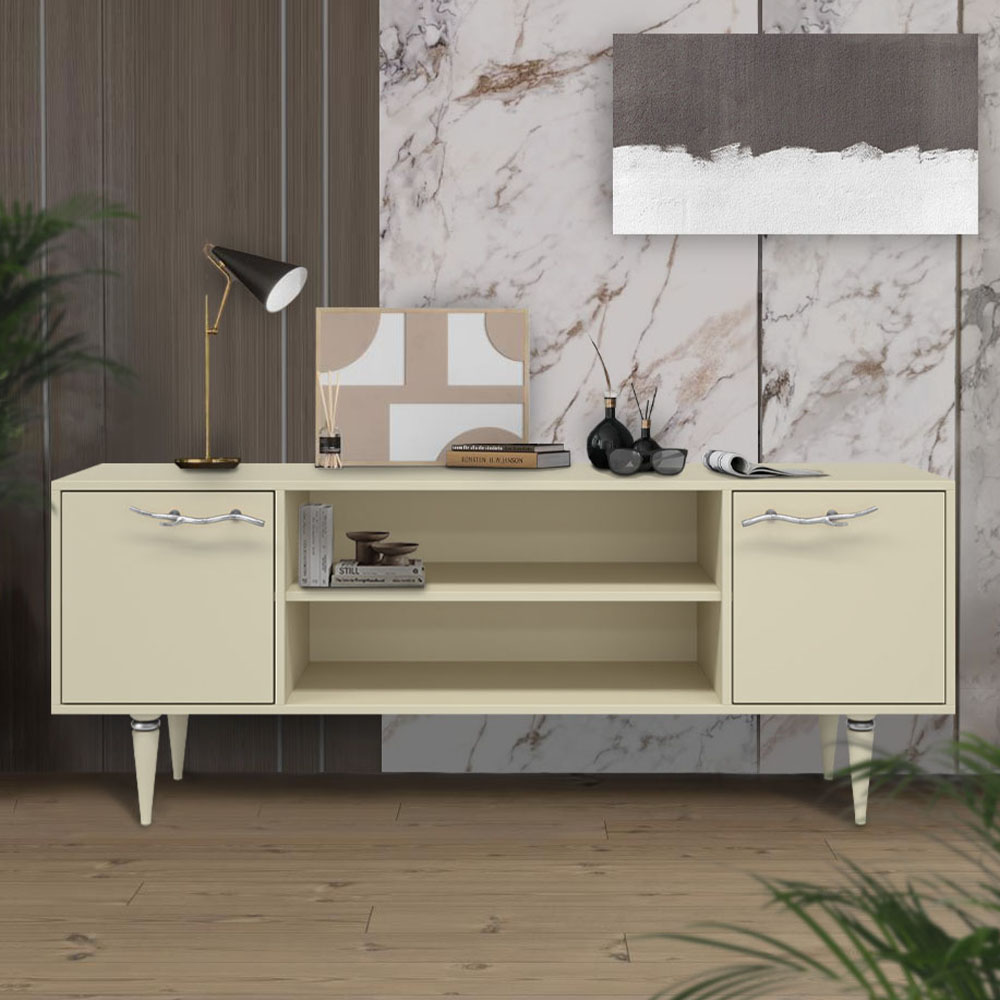 Тв-тумба – тот предмет интерьера, в котором крайне важны не только эргономичность, но и декоративная функция. Ведь подставка под телевизор, как правило, размещается в основной части комнаты, где чаще всего собирается вся семья и гости. Дизайн тумбочки под тв Арт можно отнести к направлению сканди. Это современный стиль, который удачно подходит практически под любой интерьер. Однако минимализм от Bogacho несколько отличается от классического понимания. Это чистые оттенки и простые линии форм, доведенные до совершенства оригинальным декором. Если использовать тумбу в качестве подставки для декора, книг, ваз, свечей, то она вполне может заменить классический комод для вещей в спальне. С задачей компактного хранения тумбочка также отлично справляется: имеются два закрытых отделения с вместительными полками и одно отделение для открытого хранения. Например, журналов или статуэток. Максимальная нагрузка - до 80кг. Высота ножек - 19,8 см.