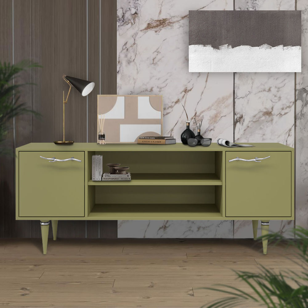 Тумба под ТВ Арт Колор matte 155см Классик Сильвер Зеленая олива матовая