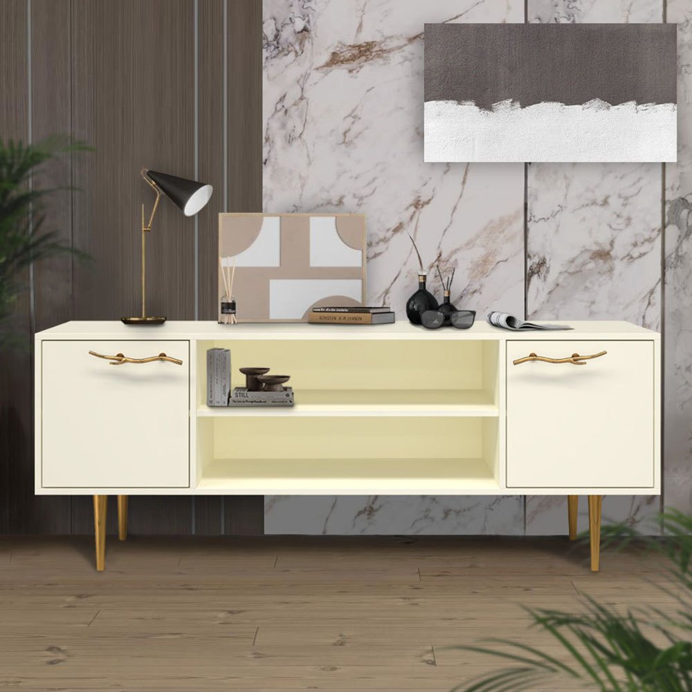 Тумба под ТВ Арт Колор matte 155см Стайл Голд Кремовый белый матовый