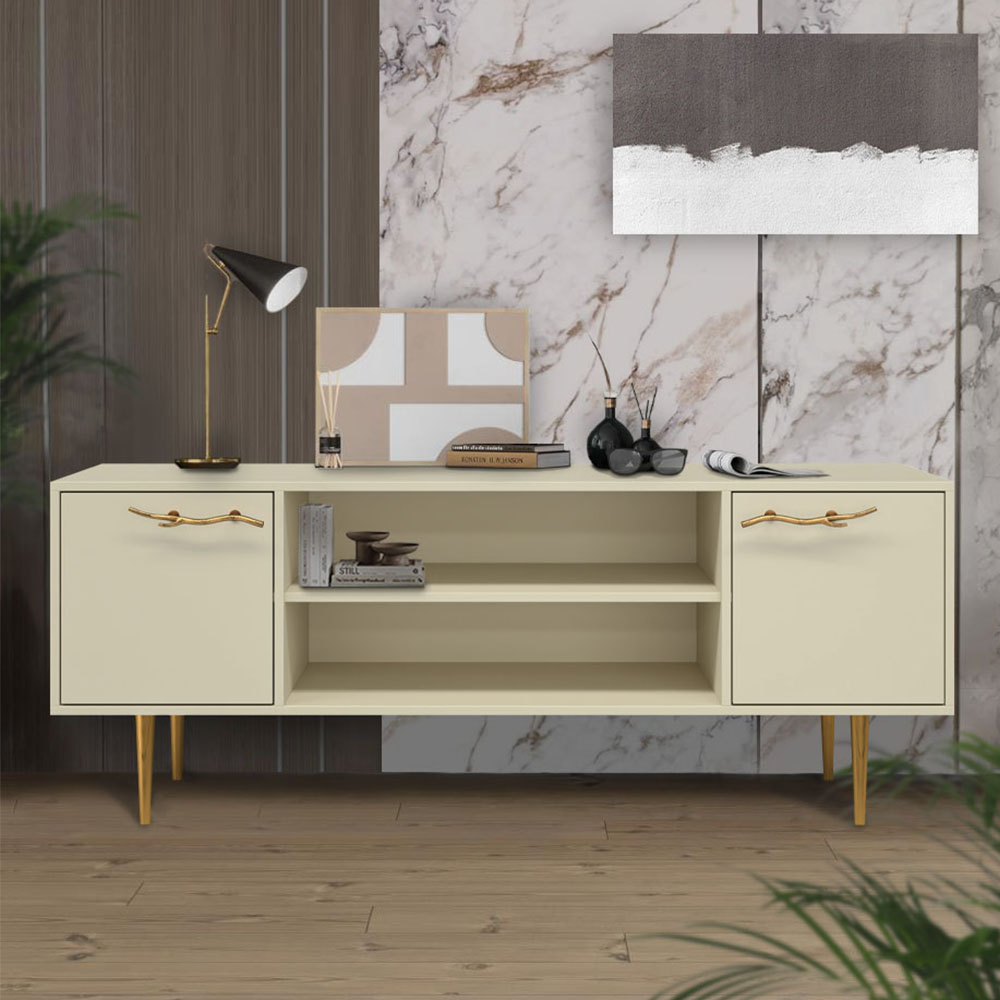 ТВ-тумба – тот предмет интерьера, в котором крайне важны не только эргономичность, но и декоративная функция. Ведь подставка под телевизор, как правило, размещается в основной части комнаты, где чаще всего собирается вся семья и гости. Дизайн тумбочки под тв Арт можно отнести к направлению сканди. Это современный стиль, который удачно подходит практически под любой интерьер. Однако минимализм от Bogacho несколько отличается от классического понимания. Это чистые оттенки и простые линии форм, доведенные до совершенства оригинальным декором. Если использовать тумбу в качестве подставки для декора, книг, ваз, свечей, то она вполне может заменить классический комод для вещей в спальне. С задачей компактного хранения тумбочка также отлично справляется: имеются два закрытых отделения с вместительными полками и одно отделение для открытого хранения. Например, журналов или статуэток. Максимальная нагрузка - до 80кг. Высота ножек - 19,8 см.