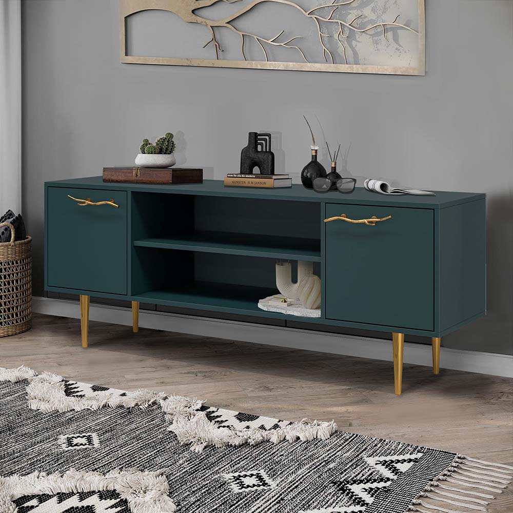 Тумба под ТВ Арт Колор matte 155см Стайл Голд Зеленый бирюзовый матовый