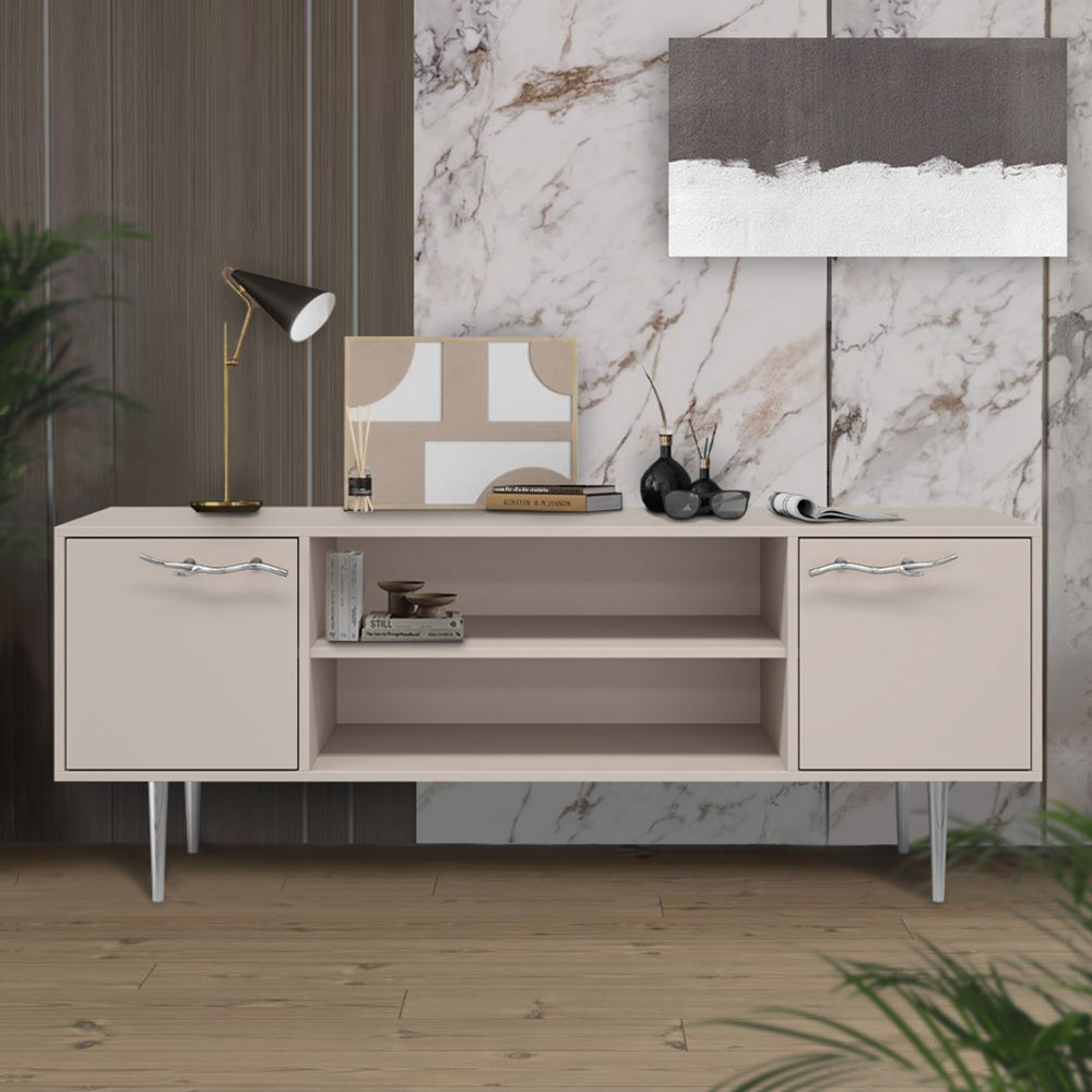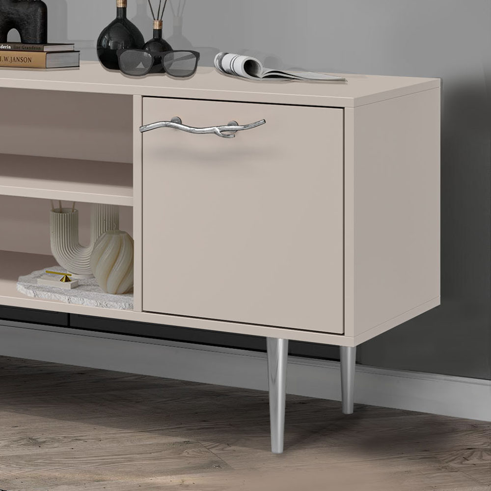 ТВ-тумба – тот предмет интерьера, в котором крайне важны не только эргономичность, но и декоративная функция. Ведь подставка под телевизор, как правило, размещается в основной части комнаты, где чаще всего собирается вся семья и гости. Дизайн тумбочки под тв Арт можно отнести к направлению сканди. Это современный стиль, который удачно подходит практически под любой интерьер. Однако минимализм от Bogacho несколько отличается от классического понимания. Это чистые оттенки и простые линии форм, доведенные до совершенства оригинальным декором. Если использовать тумбу в качестве подставки для декора, книг, ваз, свечей, то она вполне может заменить классический комод для вещей в спальне. С задачей компактного хранения тумбочка также отлично справляется: имеются два закрытых отделения с вместительными полками и одно отделение для открытого хранения. Например, журналов или статуэток. Максимальная нагрузка - до 80кг. Высота ножек - 19,8 см.