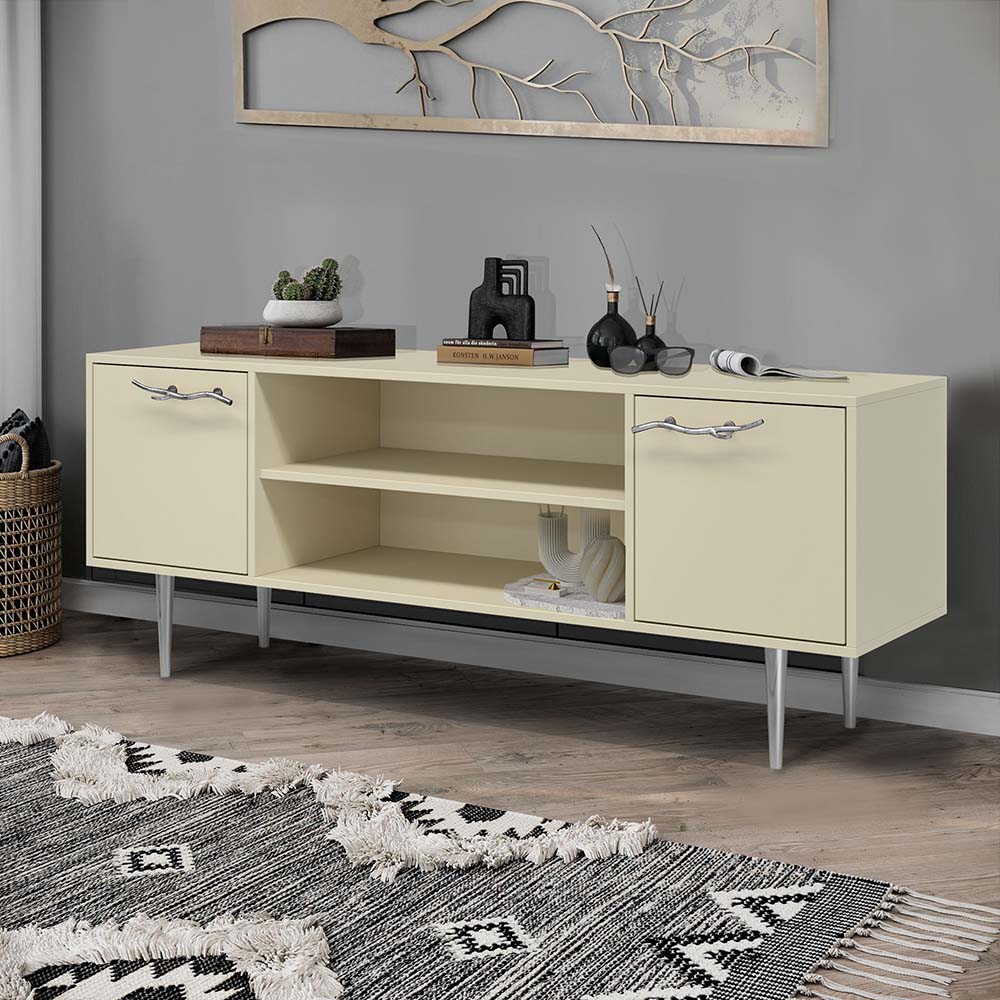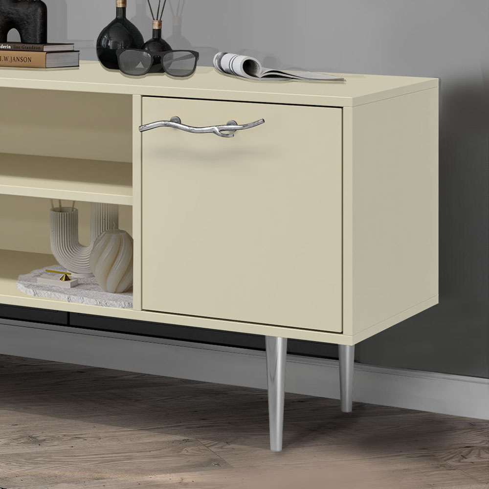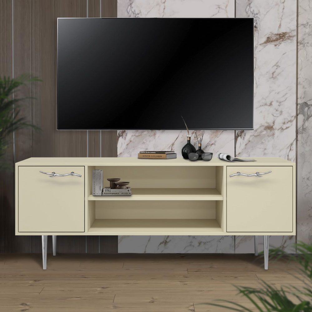 ТВ-тумба – тот предмет интерьера, в котором крайне важны не только эргономичность, но и декоративная функция. Ведь подставка под телевизор, как правило, размещается в основной части комнаты, где чаще всего собирается вся семья и гости. Дизайн тумбочки под тв Арт можно отнести к направлению сканди. Это современный стиль, который удачно подходит практически под любой интерьер. Однако минимализм от Bogacho несколько отличается от классического понимания. Это чистые оттенки и простые линии форм, доведенные до совершенства оригинальным декором. Если использовать тумбу в качестве подставки для декора, книг, ваз, свечей, то она вполне может заменить классический комод для вещей в спальне. С задачей компактного хранения тумбочка также отлично справляется: имеются два закрытых отделения с вместительными полками и одно отделение для открытого хранения. Например, журналов или статуэток. Максимальная нагрузка - до 80кг. Высота ножек - 19,8 см.